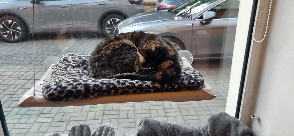 All the four cats are rescues and the cafe promotes adoption by partnering up with a local cat charity. They have a broad selection of vegan cakes and plant milk for coffee. The cafe isn't explicitly vegan which is amazing as it helps to attract "animal lovers" and send a subtle message that vegan is the only way!