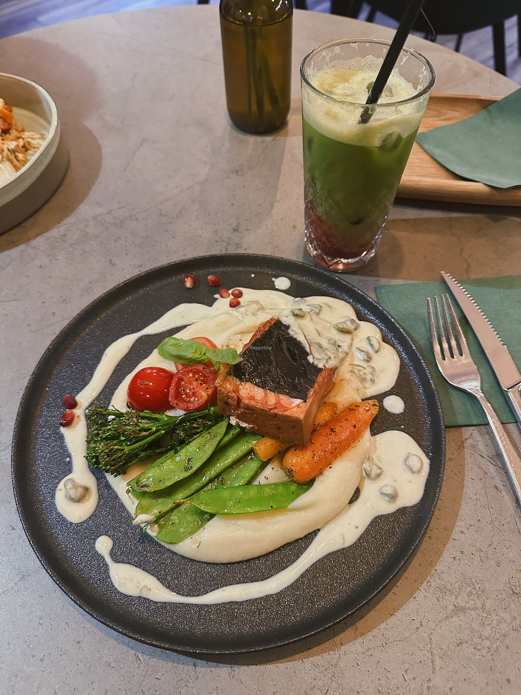 Had a mushroom burger and was very tasty, the food looks colorful and it’s a big portion. The potatoes could have a tiny bit less salt but otherwise nice atmosphere, and good food.