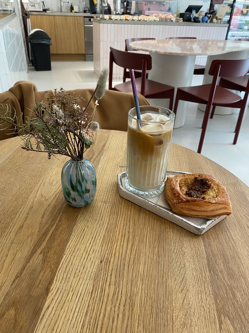 Beautiful interior and impressive vegan pastries! I tried one sweet and one savoury option and both were absolutely amazing. They also offer a good selection of bottled drinks such as kombucha