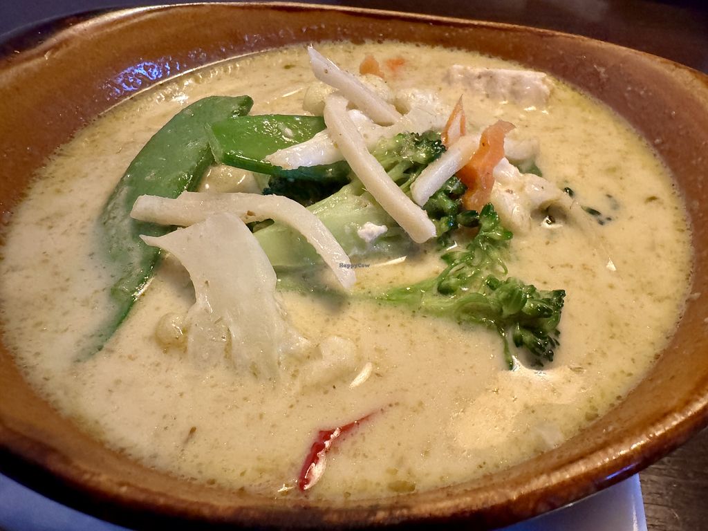 Delicious Thai food with lots of fresh vegetables. Separate vegan menu section on the back page. We had the green curry and the stir fried vegetables with tofu. And they were able to make us a vegan papaya salad too! It was not on the vegan menu, but the waitress immediately said "no fish sauce, no problem" when we asked. Highly recommended!