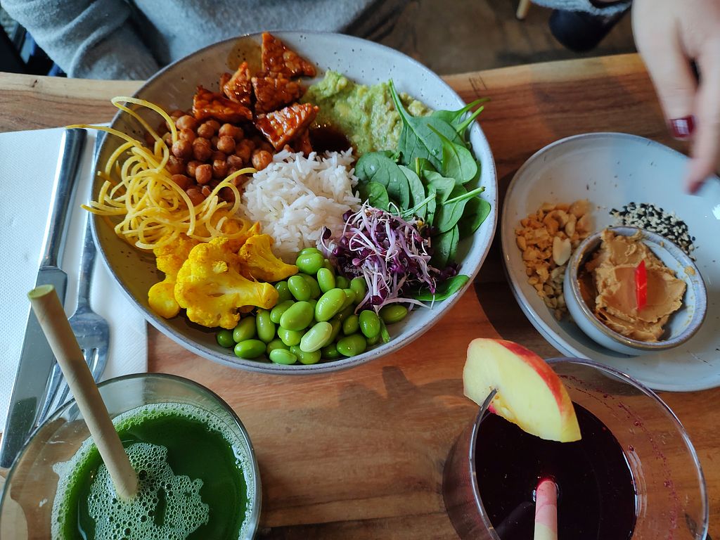 Great menu, first visit of many, I'm sure. Very warm and relaxing atmosphere. Went for the tempeh bowl, great. Misses went for the miso aubergine, fantastic flavours. Too bad we were in a rush. Next time when it's warmer we'll take a terrace seat.