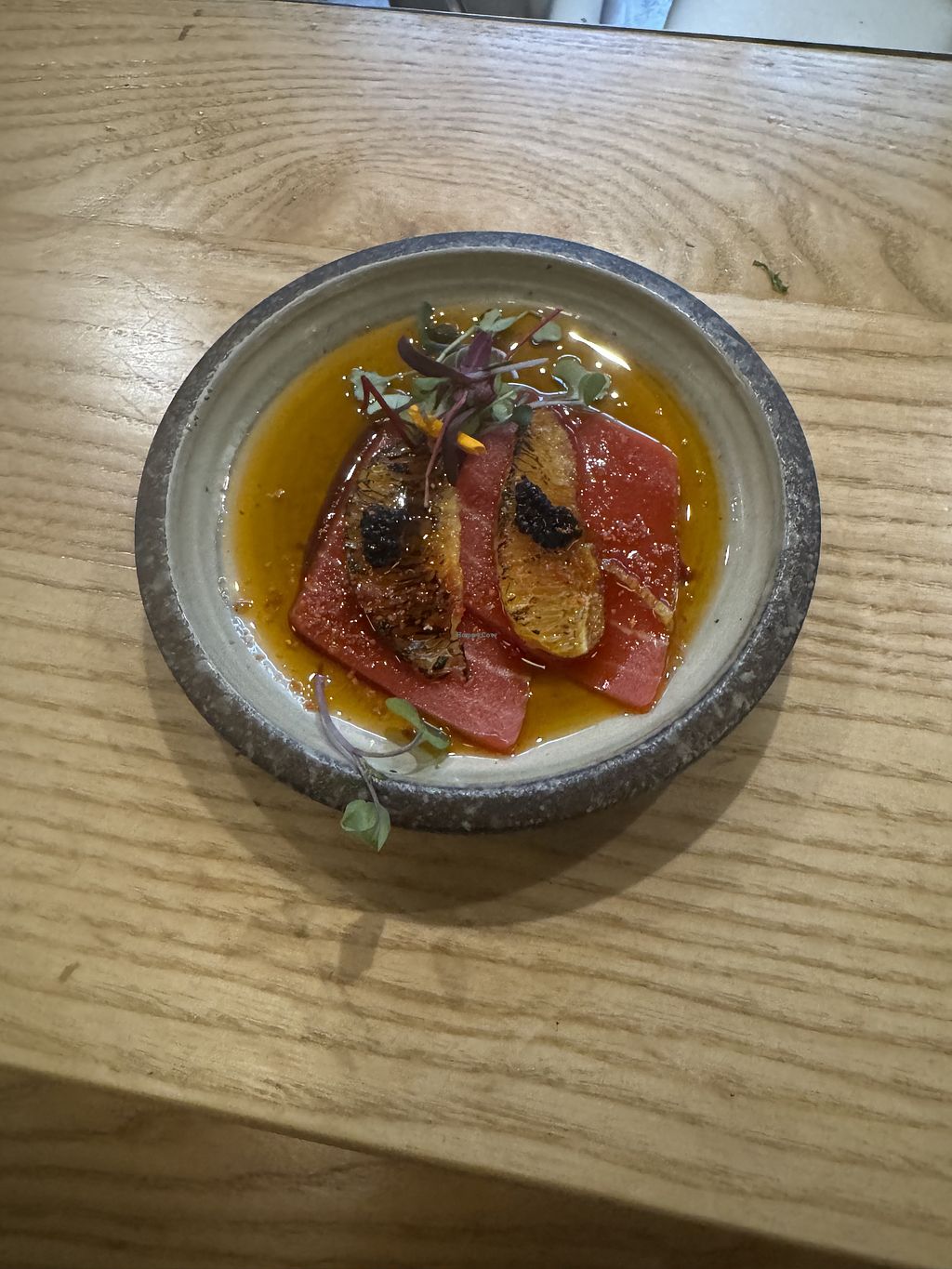 Read moreWe shared the avocado crispy rice, watermelon granita, king mushroom roll, dragon roll, and the chunk steak with Japanese risotto. Everything was cooked right, tasted great, and beautifully presented. My favorite was the avocado crispy rice, because the combination of the avocado and crispy just worked. The chunk steak was remarkable in its texture and taste, with a great miso glaze and the accompanying risotto. Everyone in our party was satiated from the meal.