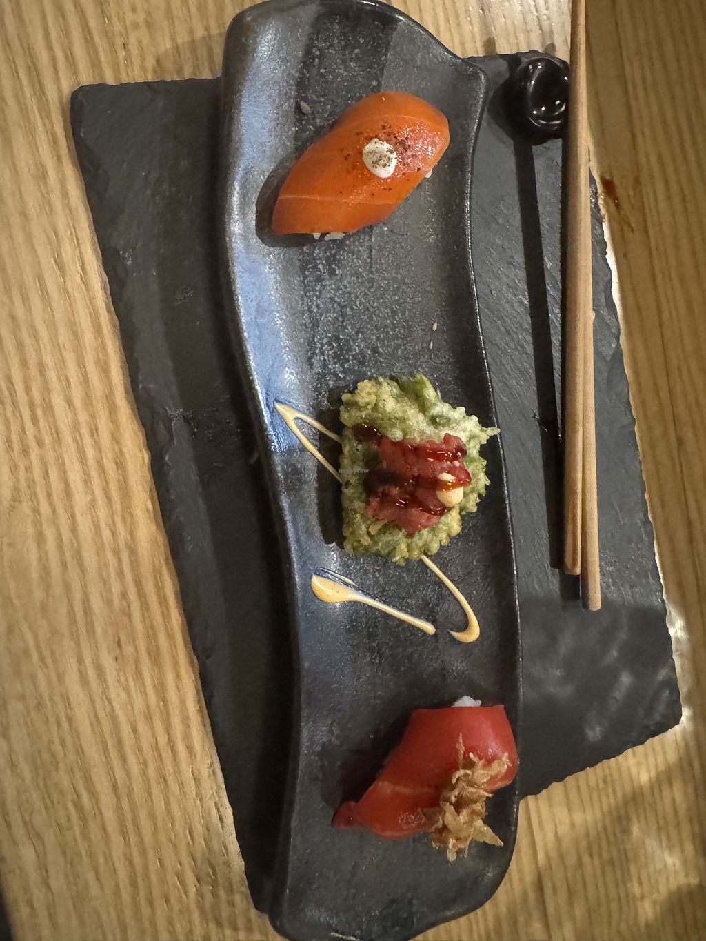 Read morePros: Avocado crispy rice, Miso Eggplant nigiri , Sesame tofu