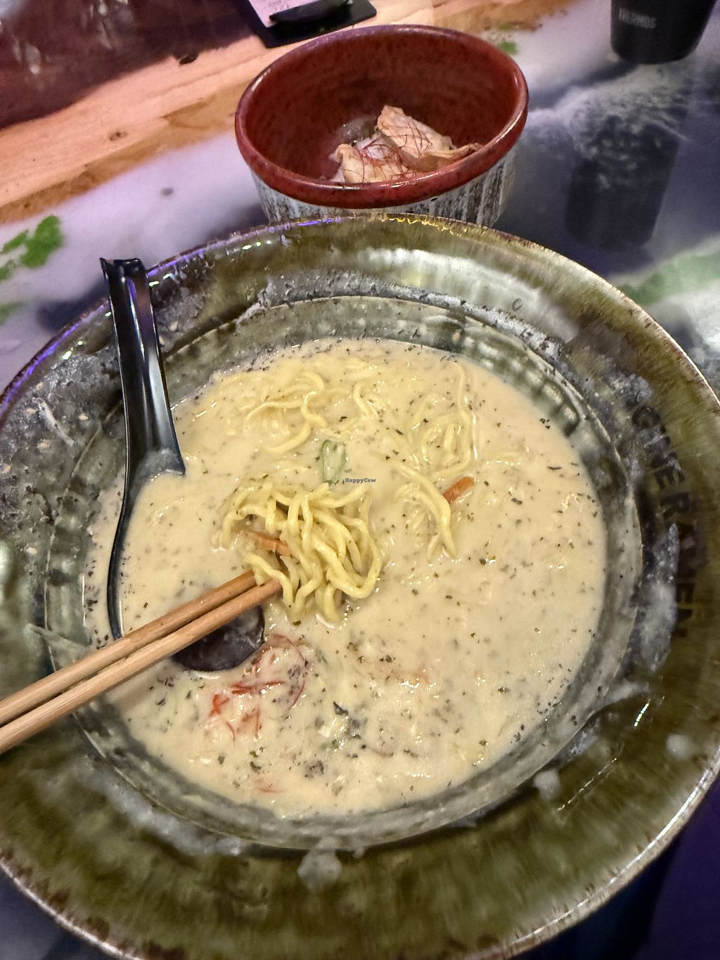 They have a couple of specific vegan ramen options on the menu. We both had the creamy ramen and it was excellent! The service was fast and friendly and reasonably priced.