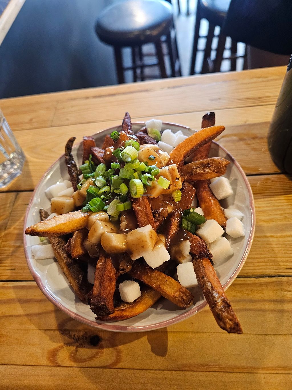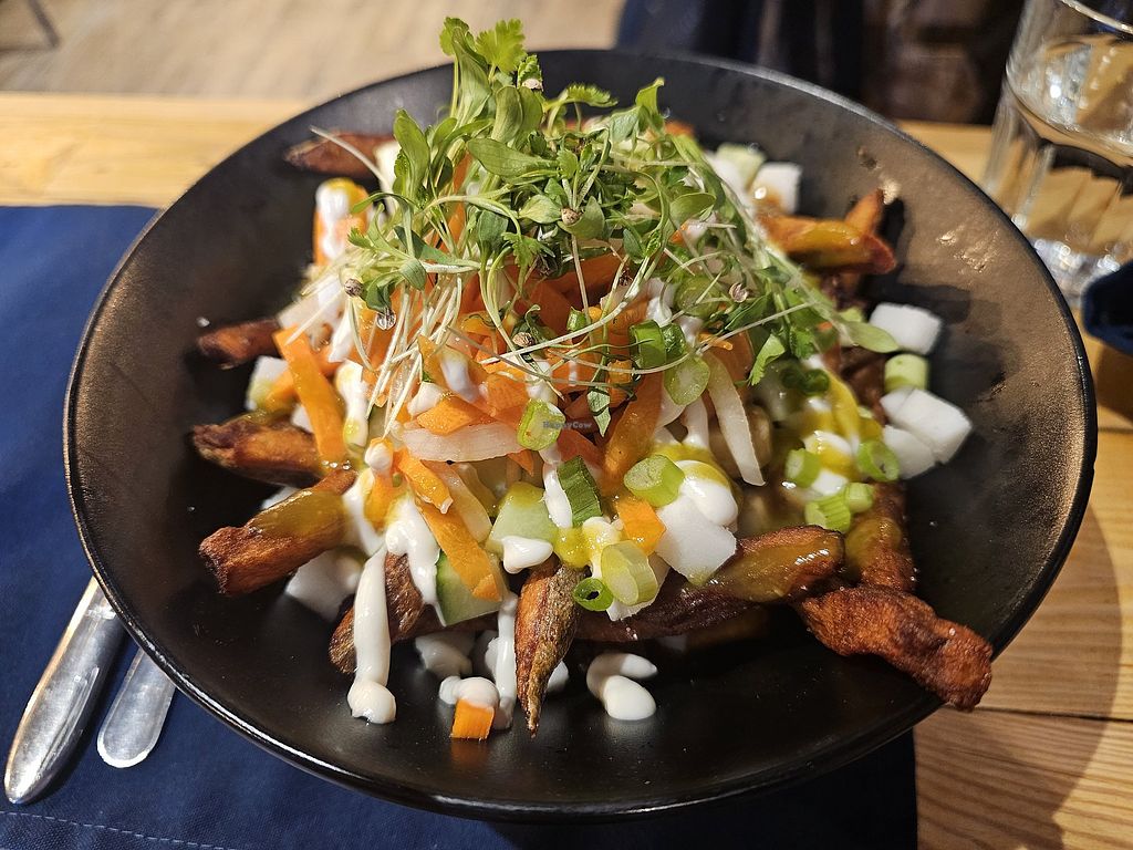 We came here after a long day of struggling to find vegan options that were open in the late afternoon. I’m so glad we did. It was quiet, the waiter was extremely friendly, the food was very very good. I know poutine is hard to make vegan, but this place did it well. I also had the chef’s bowl which was huge and delicious. Just what I needed after a long day of being hungry!
