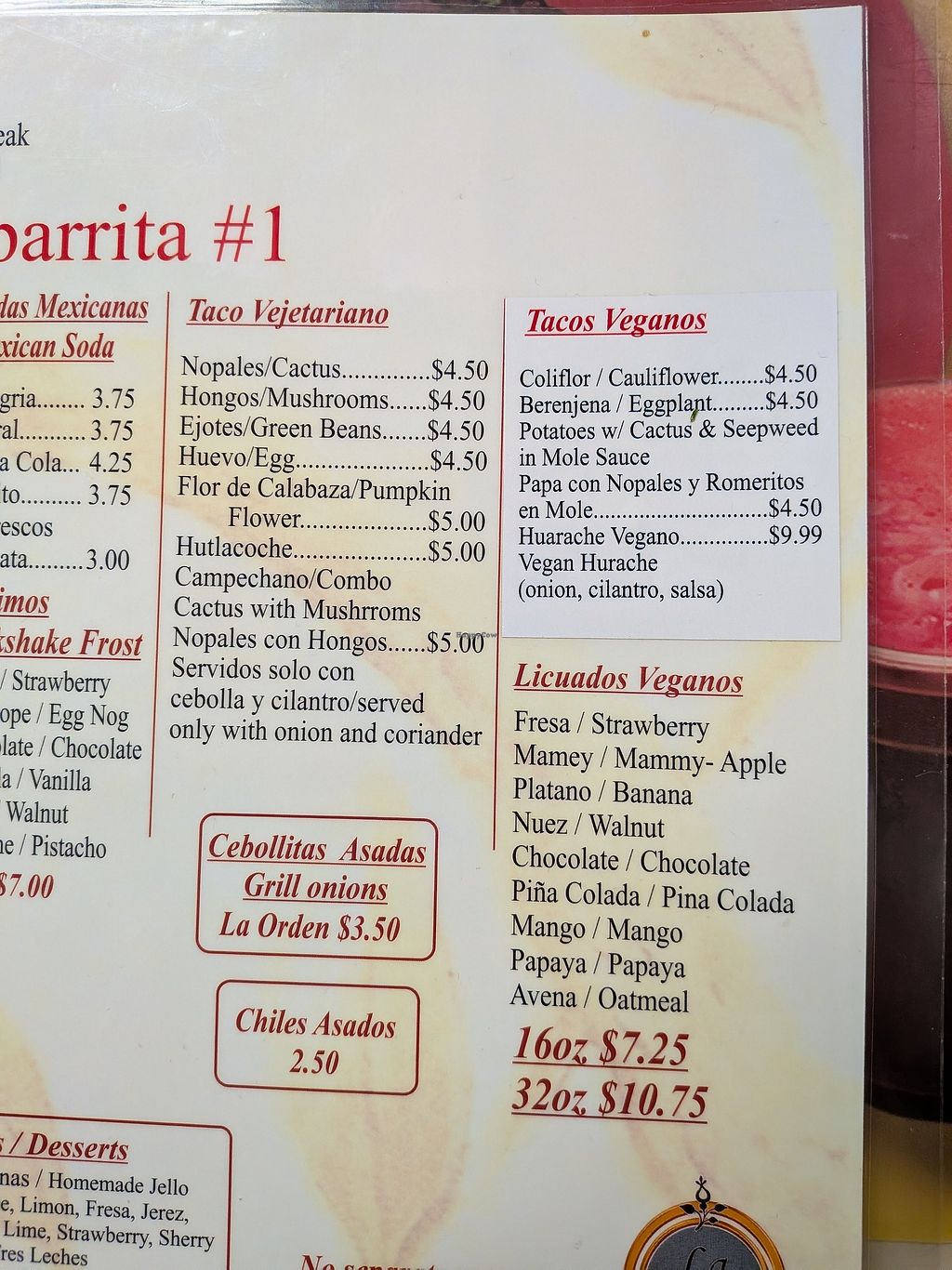 Serves meat, vegan options available. Grocery store with a small taqueria offering vegan and veganizable dishes like cauliflower taco, eggplant taco, potatoes with cactus taco (potato and nopales filling), and vegan huarache (thick masa base topped with vegetables and salsa). Open Mon-Wed 11:00am-9:00pm, Fri-Sun 11:00am-9:00pm. Closed Thurs.