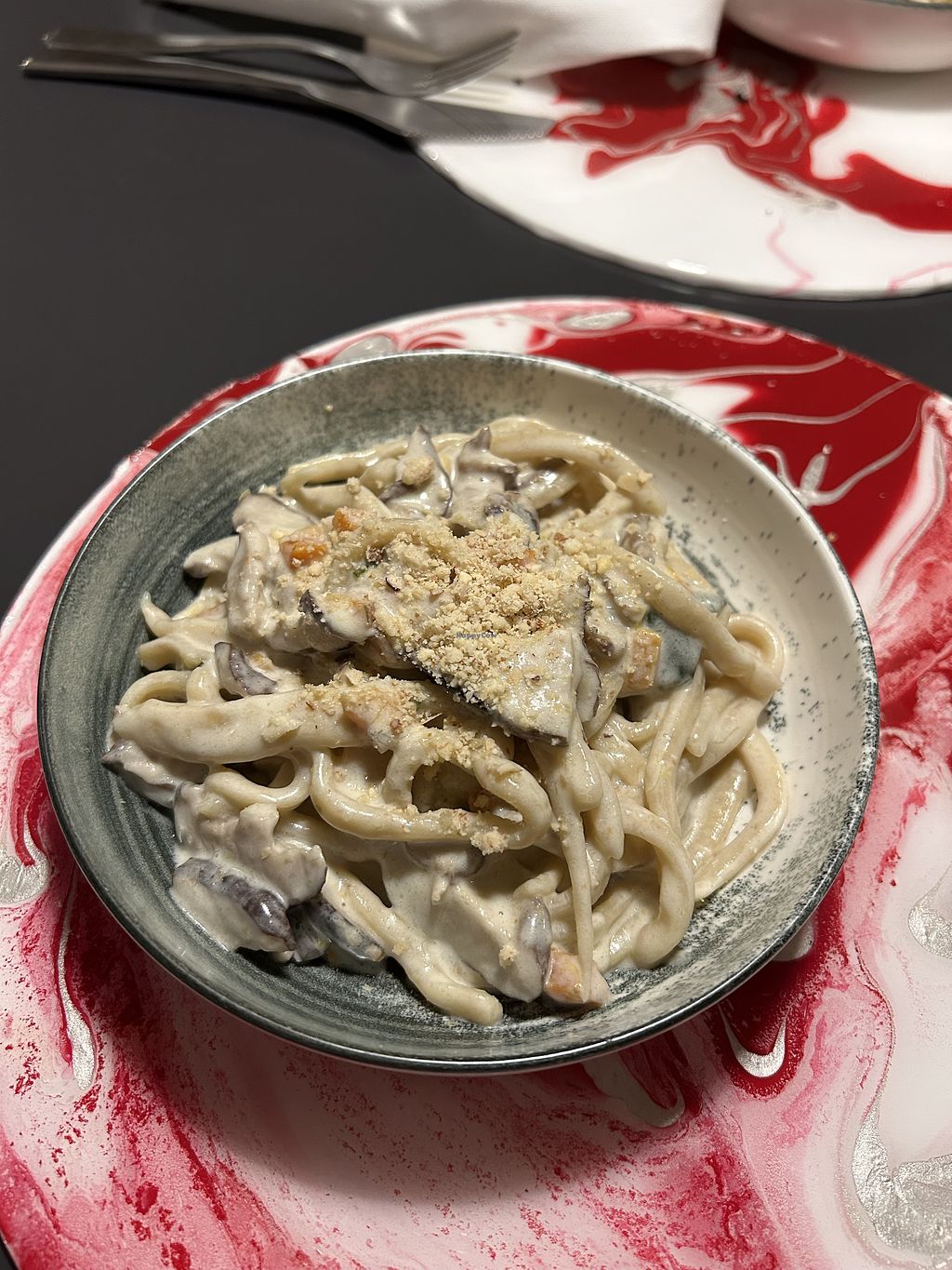 I had the pleasure of dining at this spot with four friends—none of whom are vegan—and we were all blown away. The flavors were outstanding, beautifully unique, and unlike anything you’d expect from a typical Italian restaurant. This is the kind of place where you’ll want to order a variety of dishes to share, giving everyone the chance to savor a bit of everything. Two standouts for me were the risotto with almond cream and saffron, and the homemade spaghetti with lupin beans—absolute perfection.