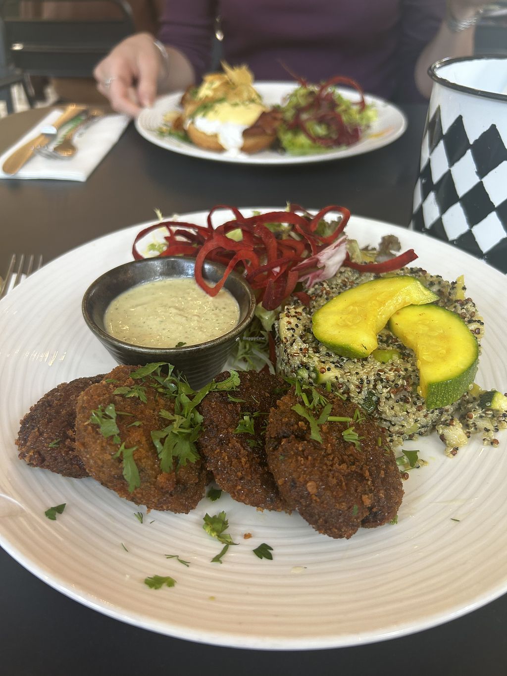 Nice outdoor space and ambience, but packed on weekends - and slightly on the expensive side. Vegan options are clearly marked.