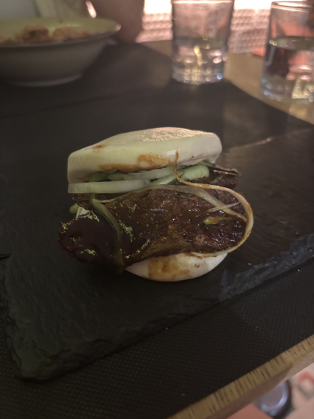 Such a nice atmosphere. I told the lovely waiter i was vegan and he just picked a few different things for me and it was all so good. I had the vegan curry starter, the croquettes and then “duck” bao buns. Vegan options all clearly labelled. Would definitely recommend