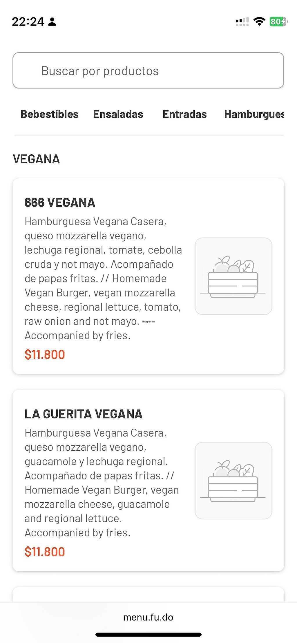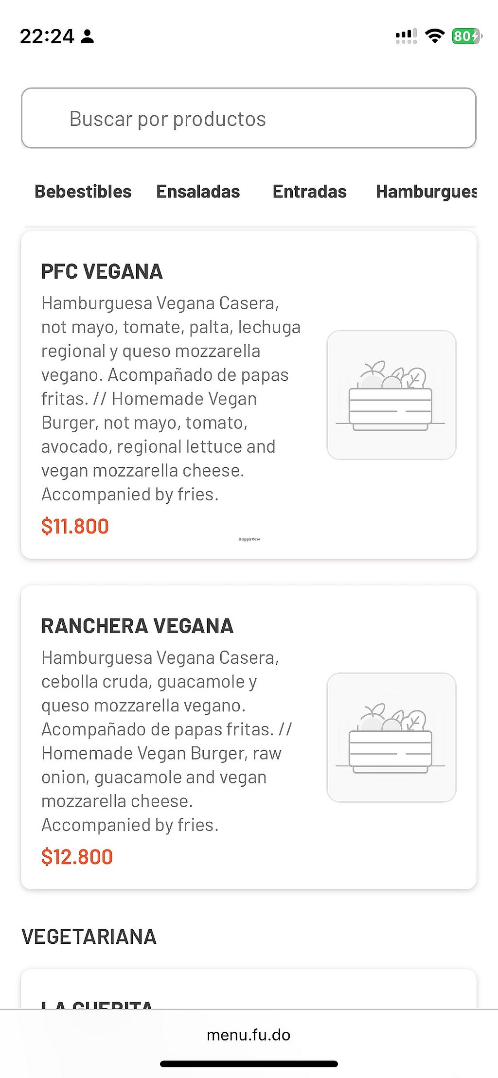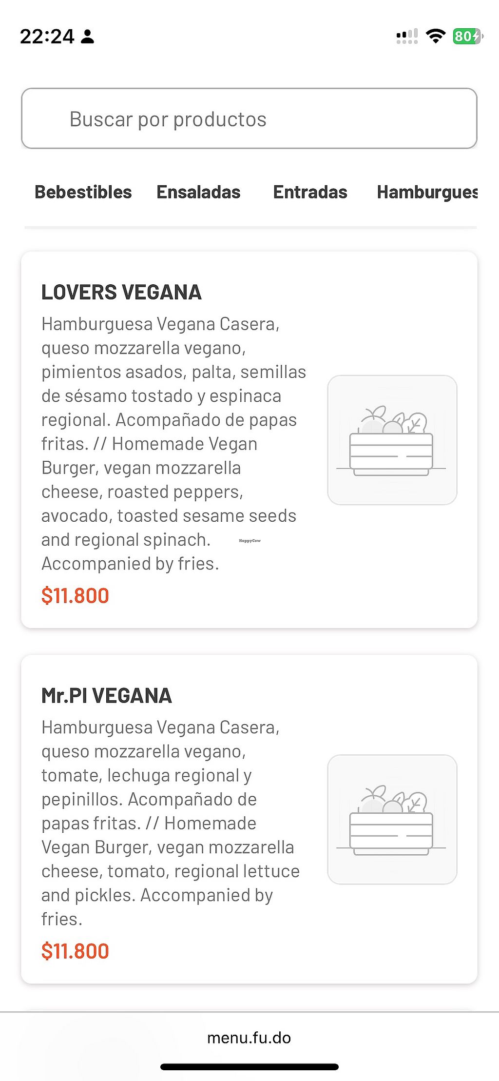 Tienen una sección entera de hamburguesas veganas hechas con Not Burger y otra de hamburguesas vegetarianas de quinoa (no aptas para veganos porque están hechas con huevo).