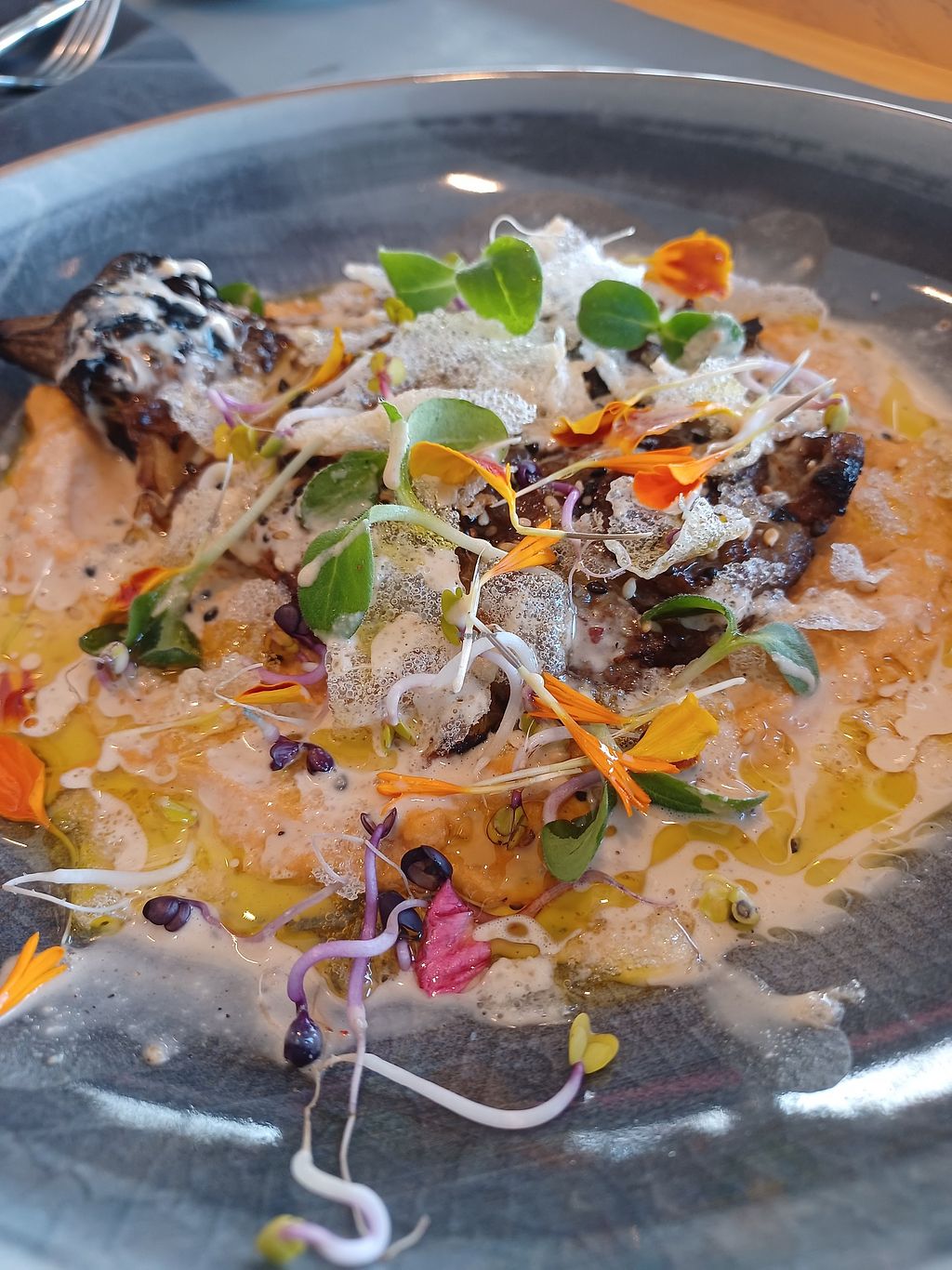 Serves meat, vegan options available. Spanish restaurant and bar with some vegan options, including salads, baba ghanoush, hummus, and grilled vegetables. Open Tue-Sun 12:00-17:00, Thu 20:00-00:00, Fri-Sat 20:00-02:00. Closed Mon.