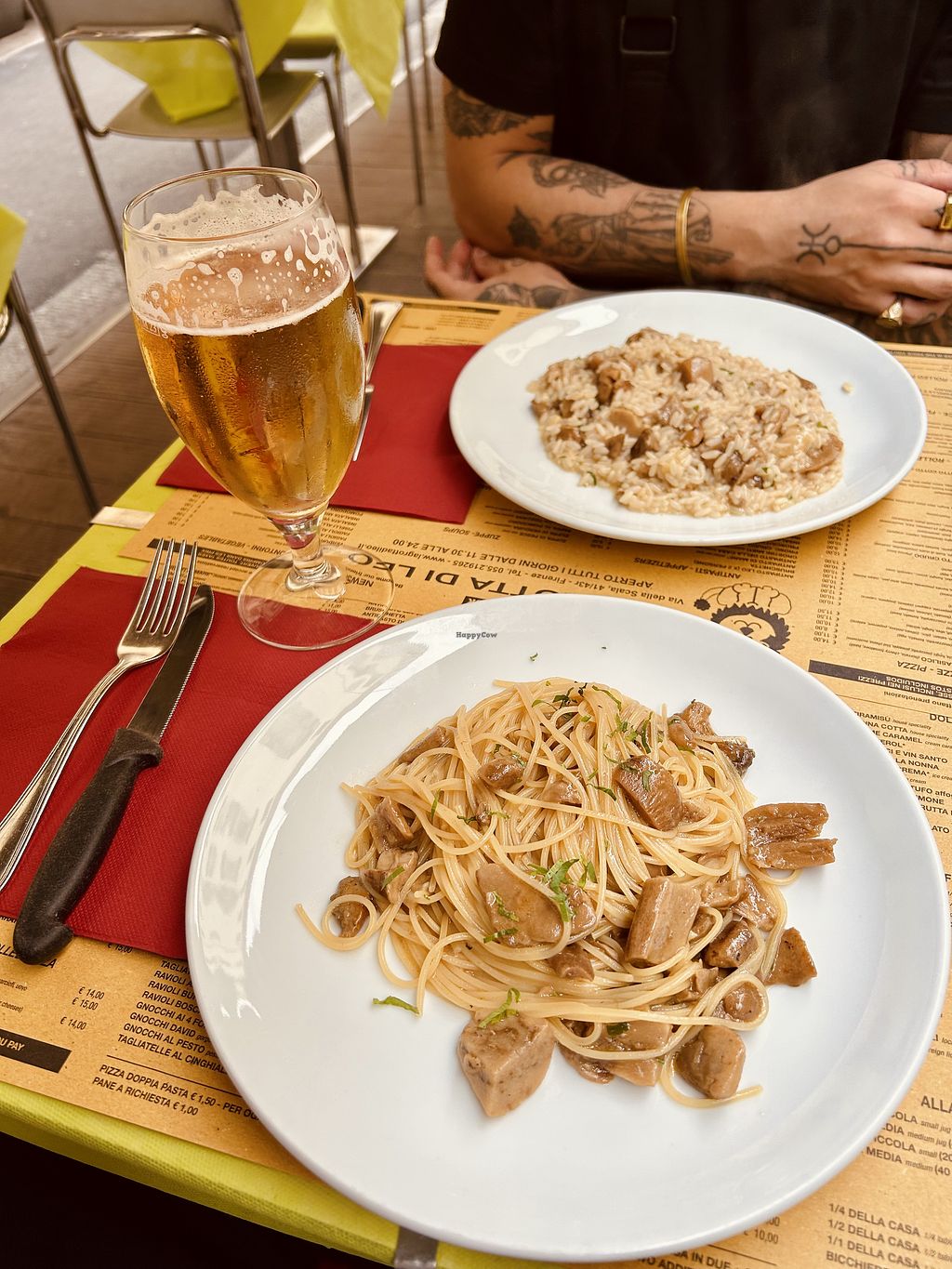 Apesar de não ter muitas opções veganas, eles conseguem adaptar. Comemos aqui um macarrão delicioso com cogumelo Porcini.