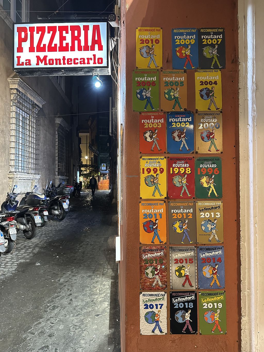 Lots of Italian diners = very good sign! 😁Delicious Roman paper-thin crunchy pizza base! I LOVED the veg buffet: not many restaurants offer it anymore and making this (variety) at home takes ages! Very yummy. The gratin courgettes were my favourites. Lots of photos of celebrities who visited on the walls (eg. Richard Gere, Owen Wilson, Carlo Verdone). Didn’t bump into any of them though 😅