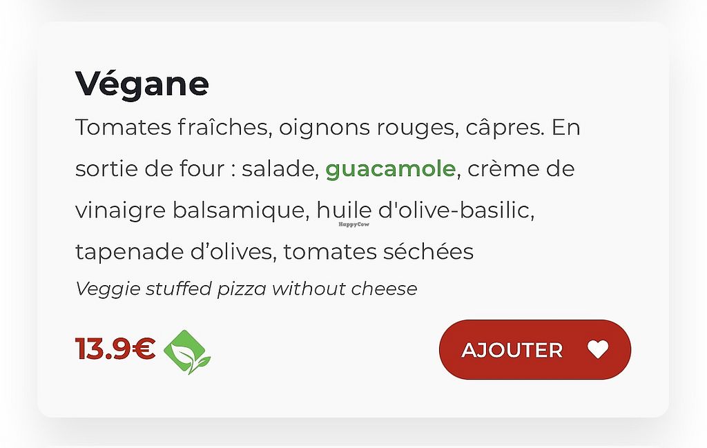 1 seule option vegane mais la pizza est bonne et super complète. Après, ça reste une pizza de chaîne !