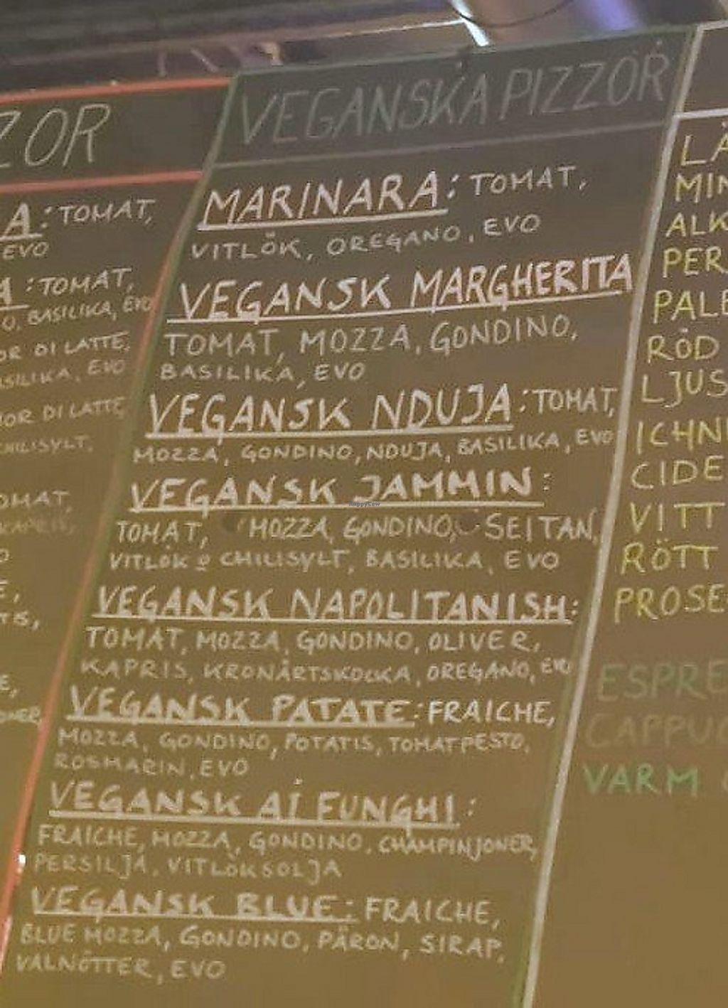 Vegan menu as of October 2025