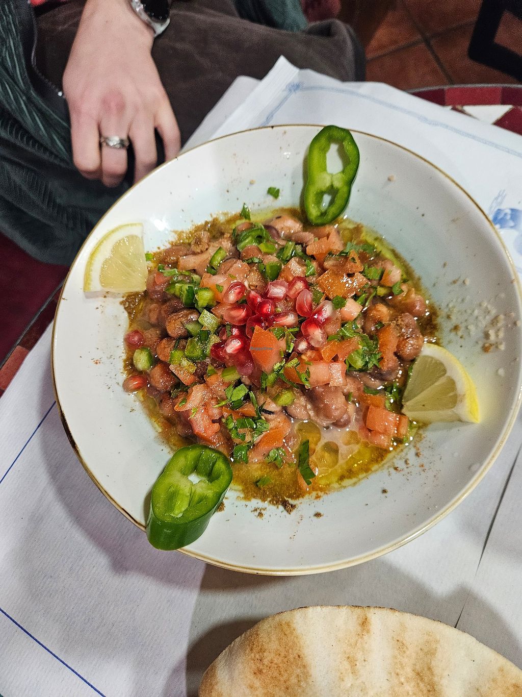 Enjoyed some houmous and falafel, accompanied by flat breads and a portion of beans. Really reasonably priced and tasty. Convenient location just off a Main Street too