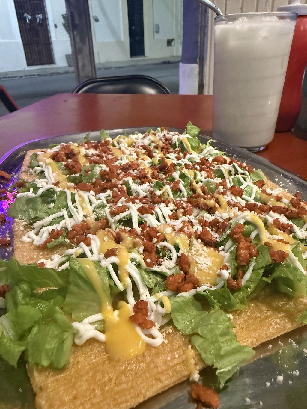 A humble little spot in what looks like the front courtyard patio of their house. Hands own our fav option to get meat style favorites like queso fundido, tortas, Tacos and gringas. Worth the drive outta town since the cheese and mock meets are delicious. They also sell some plant based cheese and meet options to take home.