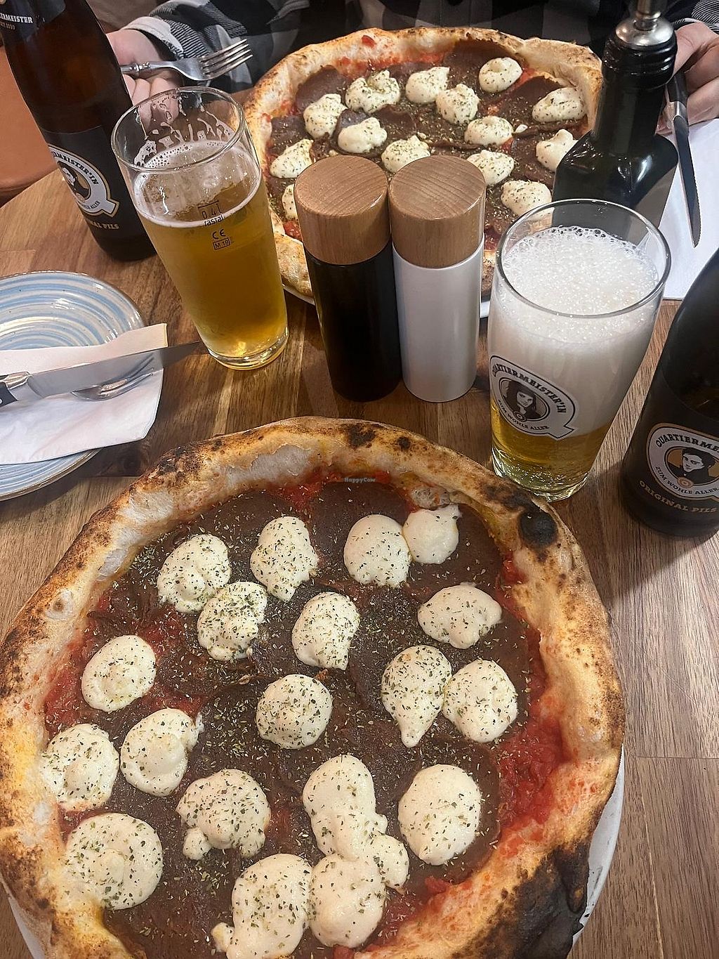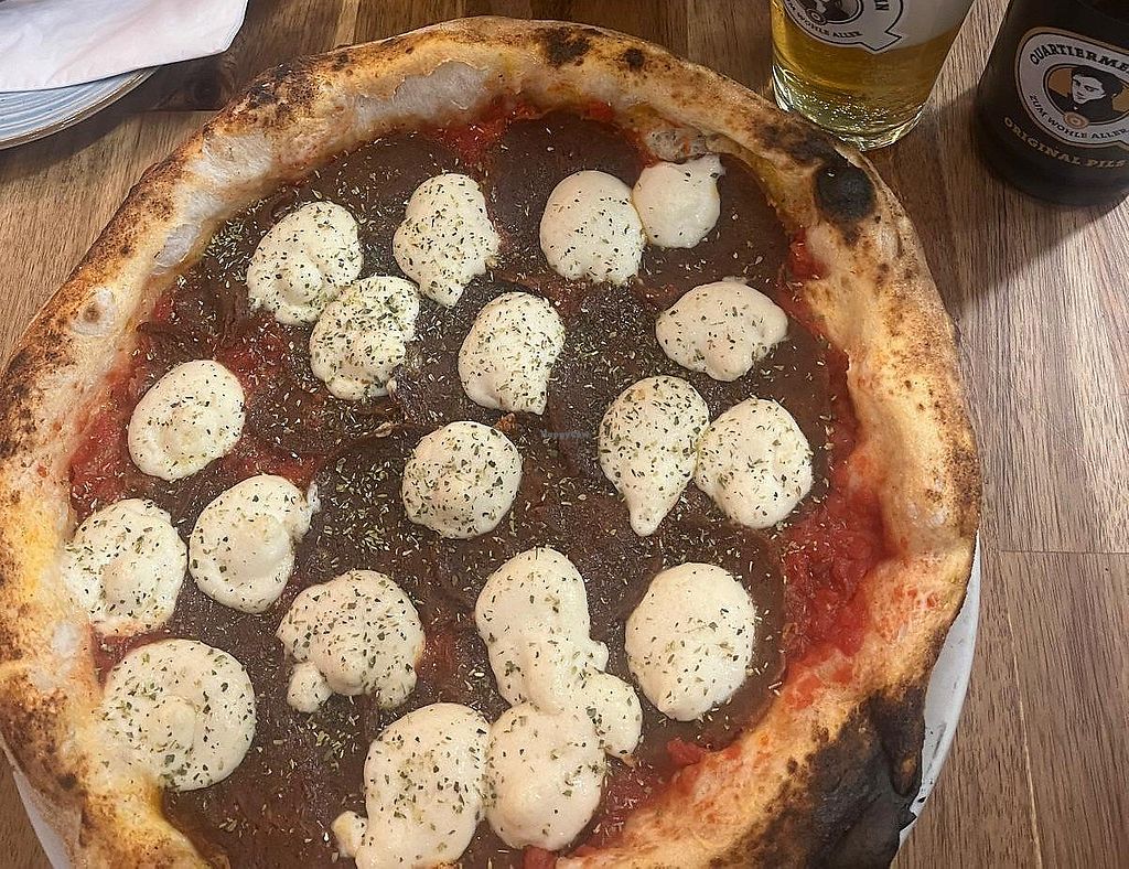 This is hands down the best vegan pizza in Berlin, if not anywhere. The vegan cheese is actually wild. It tastes just like mozzarella, which is so rare. I’ve been here many times and it always hits. I always order the carciofina piccante because I love the kick from the chilies, and the garlic and chili olive oils on the table make everything even better. Im giving it 5 stars this time even though the topping-to-crust ratio was off. There were way too many toppings, which made the pizza a bit unbalanced. That’s never happened before though, so I’m guessing it was just a fluke. I recommend making a reservation before coming because it’s always busy!