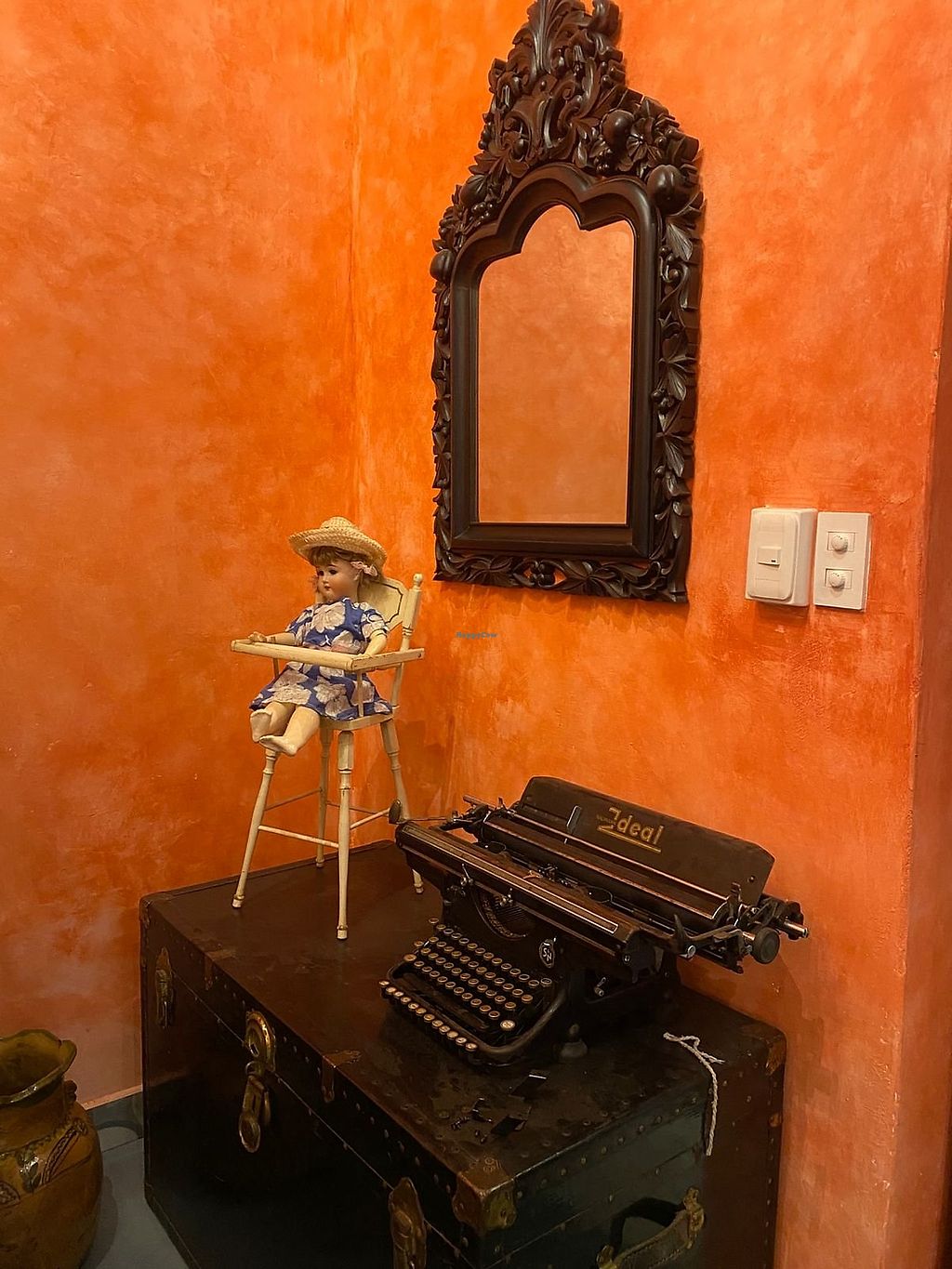 Vegetarian restaurant offering pizza, pasta, and drinks in a setting filled with antiques.