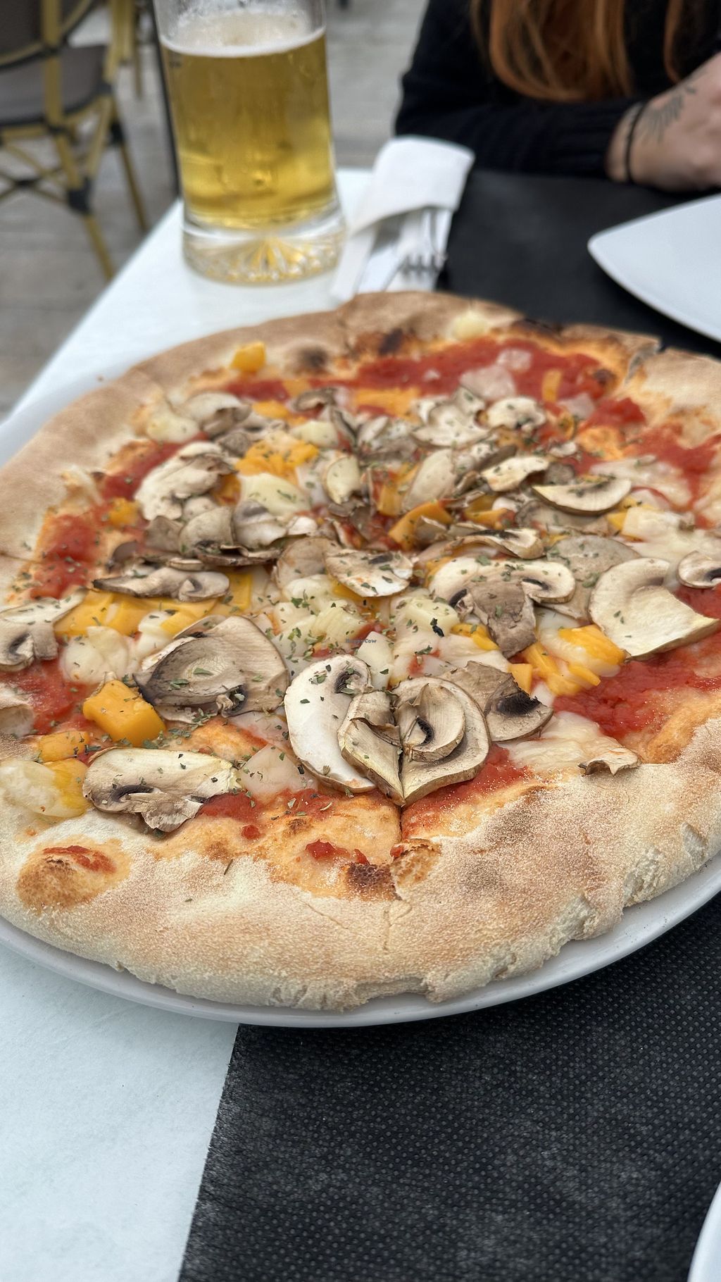 Excellent location, pizza was super tasty. We also had the pumpkin ravioli (although I’d ordered the broccoli dish but my Spanish is poor) and fries. Only let down was the chips didn’t seem homemade but otherwise would eat here again. A good few vegan options and everything was very tasty.