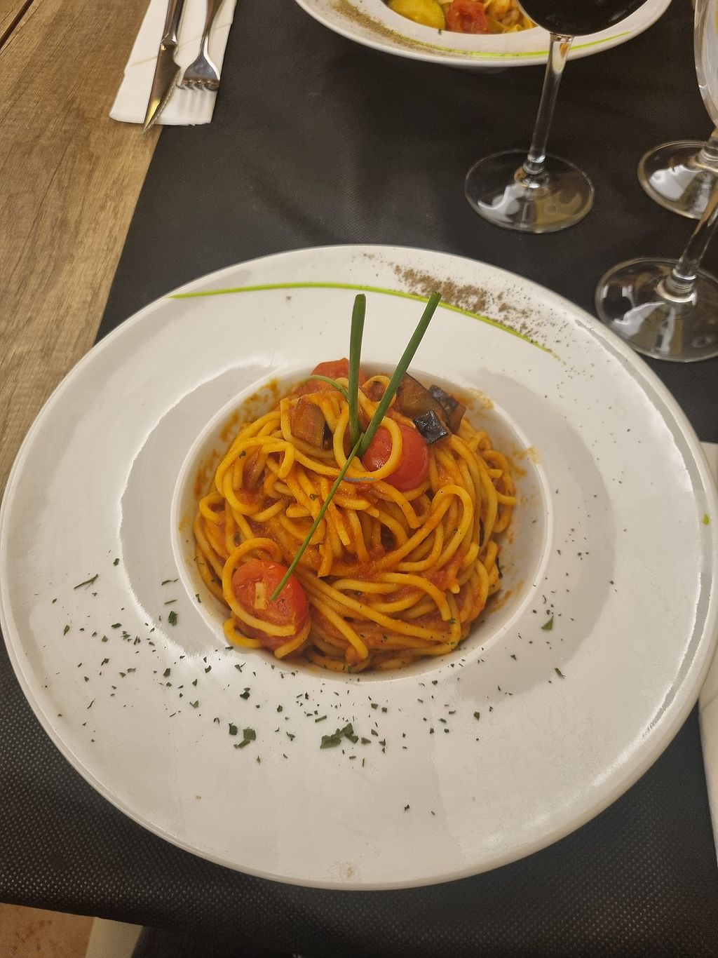 Read moreThere are not many vegan options (pizza marinara, Risotto verdure) but I veganised the spaghetti Norma (I asked to left the cheese out) and they did it😄very very delicious!!!
