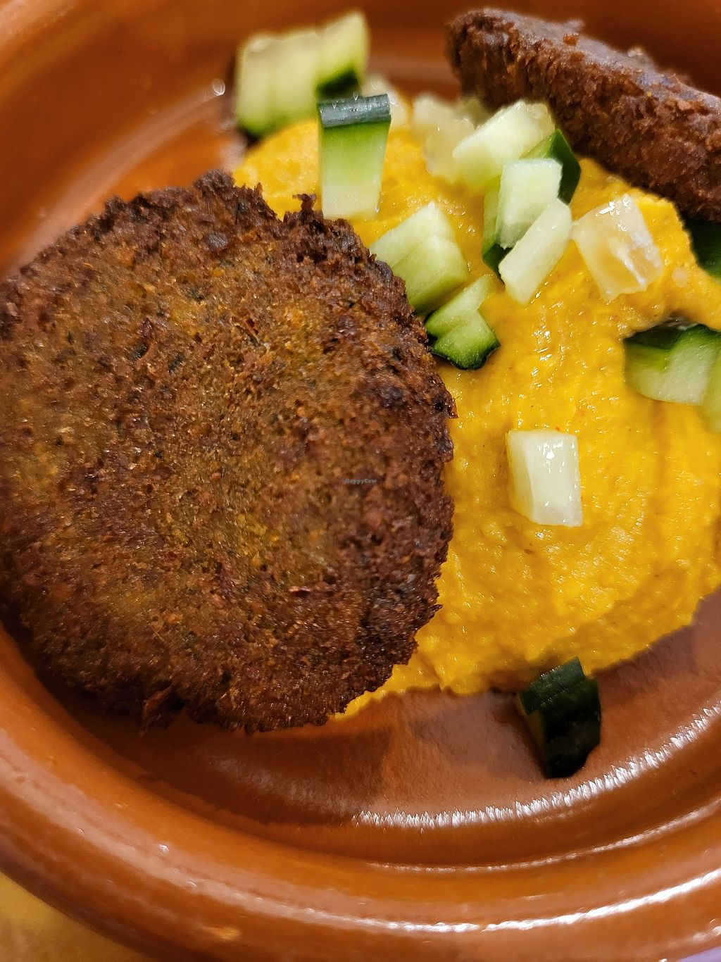 Called in here late in the evening for a snack. We didn’t want anything too rich so ordered croquettes, omelette and Russian salad. It was all pretty rich to be honest. Really delicious. A big menu. All vegan. Hoping to go back and try more dishes tomorrow.