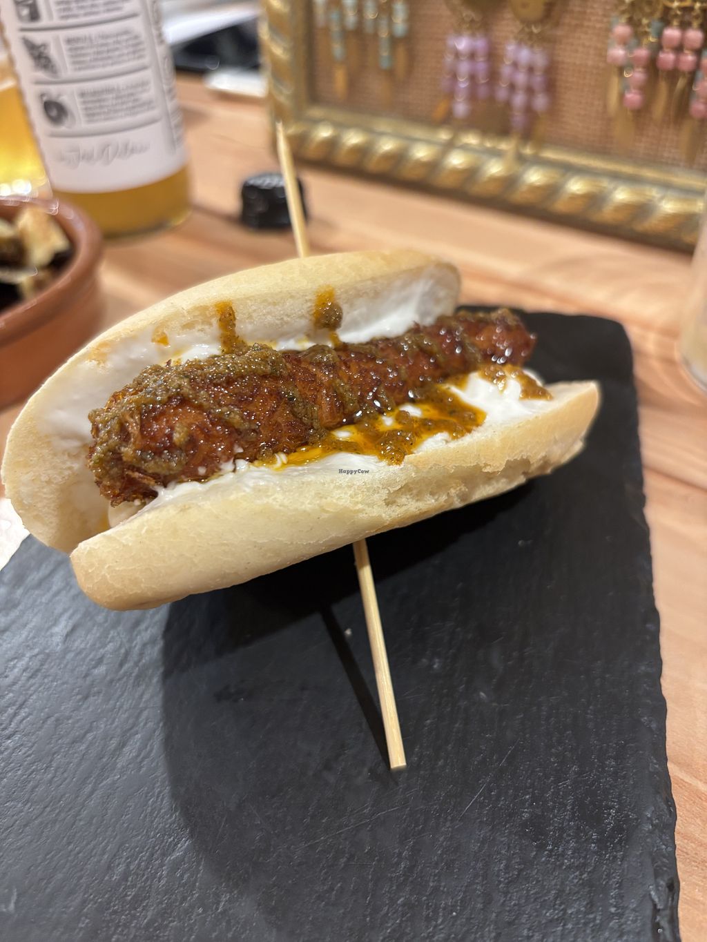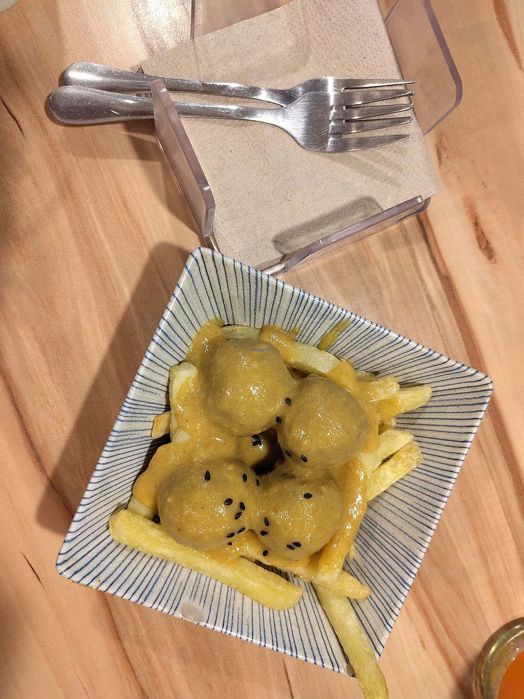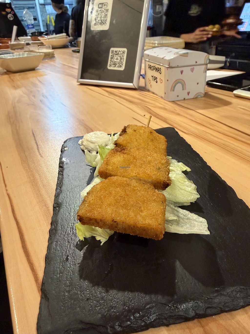 Read moreI had been excited to try vegan versions of the tapas I had enjoyed as a vegetarian. Unfortunately the taste here was off for me, being too greasy and oily. There is not much seating and what is there is uncomfortable, being high tables and stools. The staff was not friendly and did not explain that it was a QR code menu until we went up to the counter to ask.