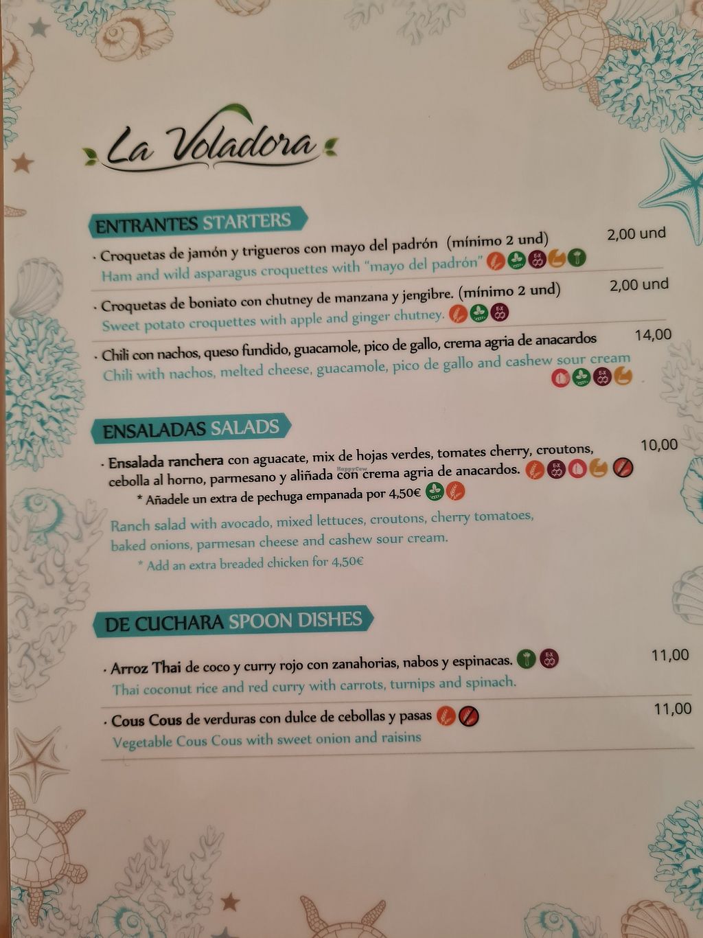 We visited for lunch on our holiday in Alicante. We chose the ranch salad, chillie and nachos and guarnicion potatoes. All absolutely amazing, good value and beautifully presented. I usually take pics but we were very hungry and it totally went out of my mind!