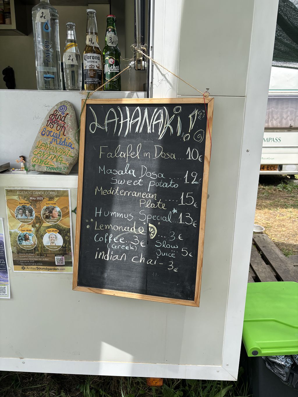 Fully vegan food truck. Offers Mediterranean and Indian street food such as masala dosa, hummus, falafel and more. Situated in a sweet chill-out spot in Arillas. Village with lots of shade and children-friendly. Open Mon-Fri 12:00pm-5:30pm, Sun 12:00pm-5:30pm. Closed Sat.