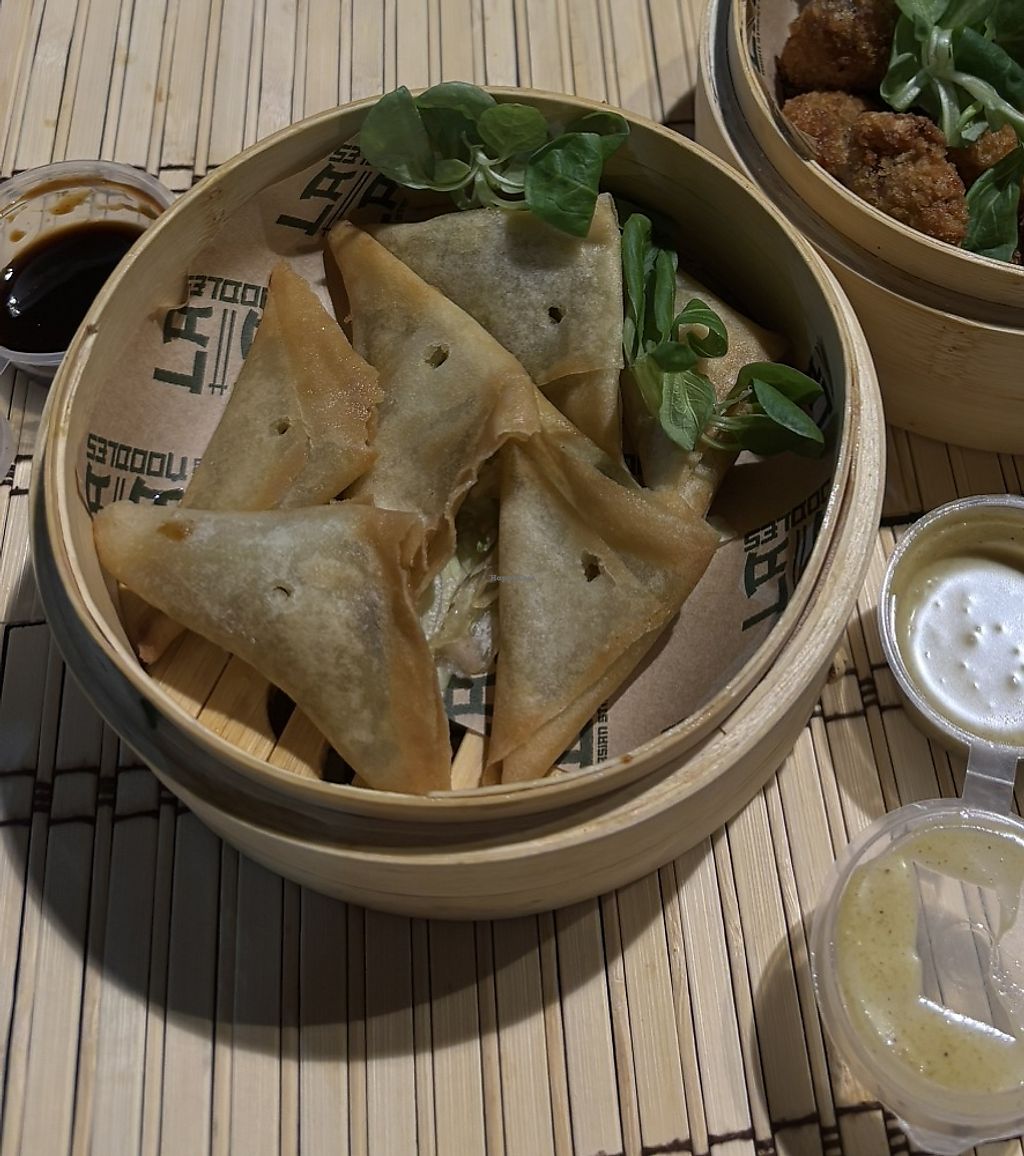 There are lots of options to start, edemame, boas, gyozas & we had the samosas.