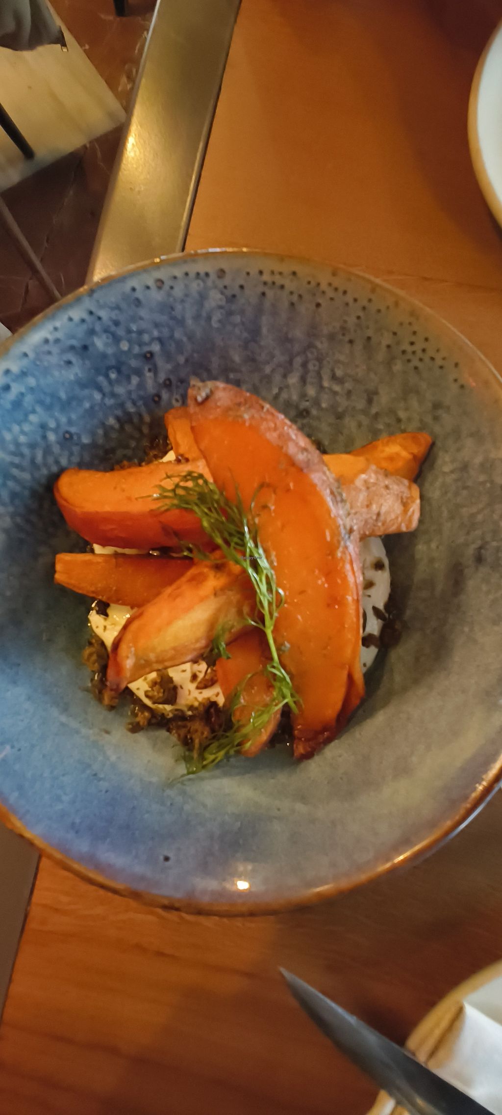 Very decent range of vegan options properly labelled and also in a dedicated section of the menu. Many main dishes use plant-based meats from Compasión vegan butchers, which looks to me like a wonderful collaboration. The restaurant is really nice and has a lot of tables. I would've given 4 stars but seeing a 500gr beef steak in the menu made me think there's something completely wrong in our society. I'm pretty aware that all vegan-friendly restaurants serve meat and/or fish, but seriusly guys, a 500gr beef steak has much more implications than dietary choices, and all of them are wrong.