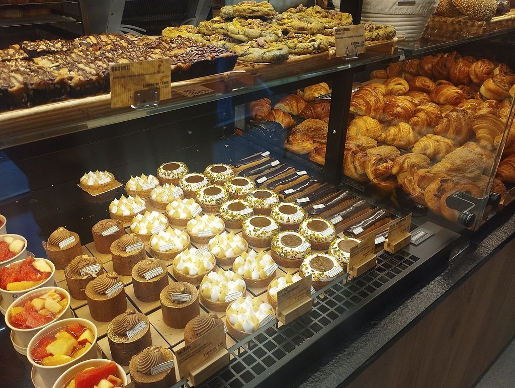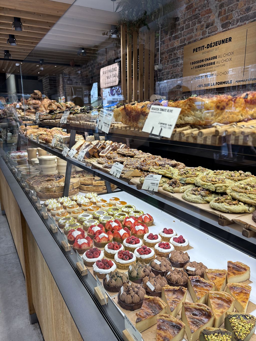 Large variety of viennoiseries, pâtisseries, sandwiches and bread.