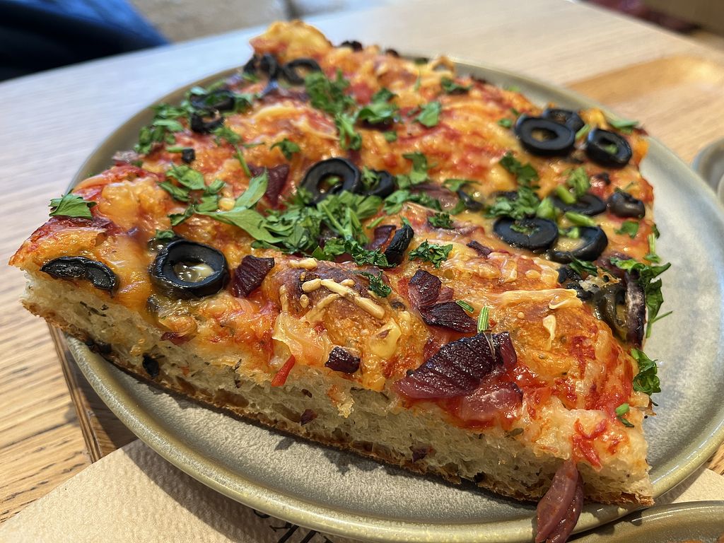 Dreamy range of vegan delights making it near impossible to choose until you panic order. Smaller shop here than some of the larger ones with only 4 tables inside but a bar with stools at the windows too. They didn’t seem to have a toilet at this one. The focaccia wasn’t my favorite but possibly as I’m not crazy on parsley which it was covered with. The almond croissant I hadn’t seen at other venues so I felt I had to snatch that up while I could. It was yummy and smashed. The prices are quite reasonable too. Lovely coffee as well.