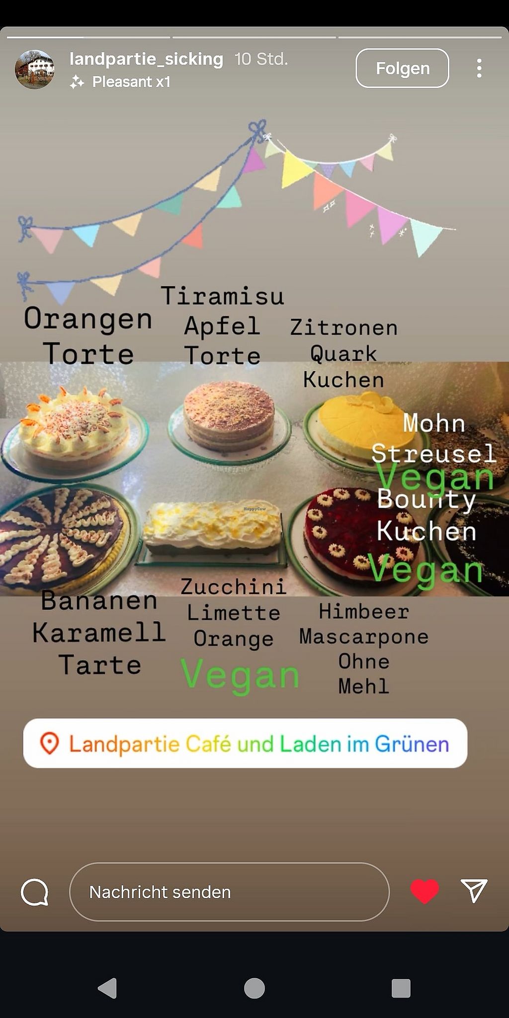 Herrliches Ambiente, leckere vegane Kuchen, Torten und Aufstriche und supernette Gastgeber. Wir fühlen uns immer sehr wohl dort.