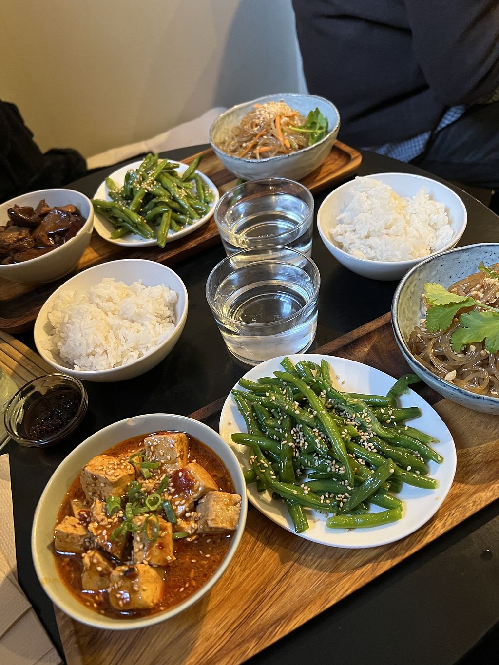 I’ve been here twice now and the first time I got the crepes. Super yummy! Last night we ordered takeout and we were four people and bought 12 small dishes to share. After about three dishes each we were all full. I think one could actually be satisfied with just two dishes plus rice. Super good vegan meal for about 90 SEK that will get your tummy happy. Lovely!