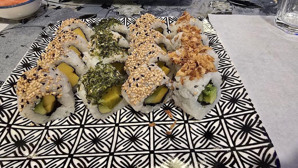 We chose individual pieces instead of the vegetarian menu because it had a lot of cucumber and my boyfriend doesn't like it. So we chose a variety of pieces: avocado, cucumber, mango, banana and canned turnip maki, vegetarian temaki, some California rolls... The lady let us change some sushi pieces to adjust to our liking (taking of fish and replace it with avocado, etc) and they were all really good! We ate a reasonably amount (probably 30 pieces each) and we paid 20 euros (no beverages) in total 😄 Also, it took a while for the cook to prepare our sushi (not too much though) so we could tell he was putting thought and effort on the food and the presentation!