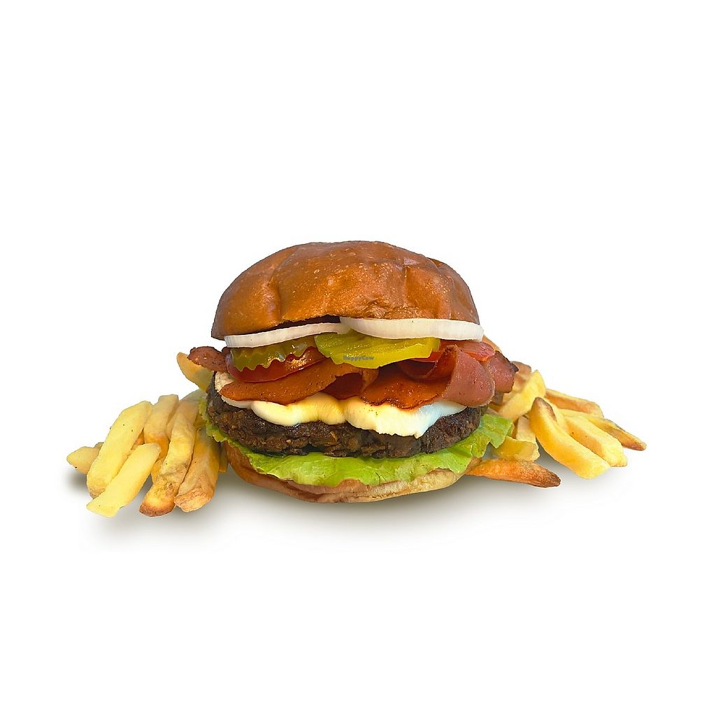 Vegan burger place offering a variety of vegan burgers made from soy and pea protein patties served on vegan buns. The menu also features "No Pollito" (no chicken) options made with crispy breaded tofu. All options are accompanied by French fries. Open Wed-Sat 6:00pm-11:00pm. Closed: Mon, Tue, & Sun.