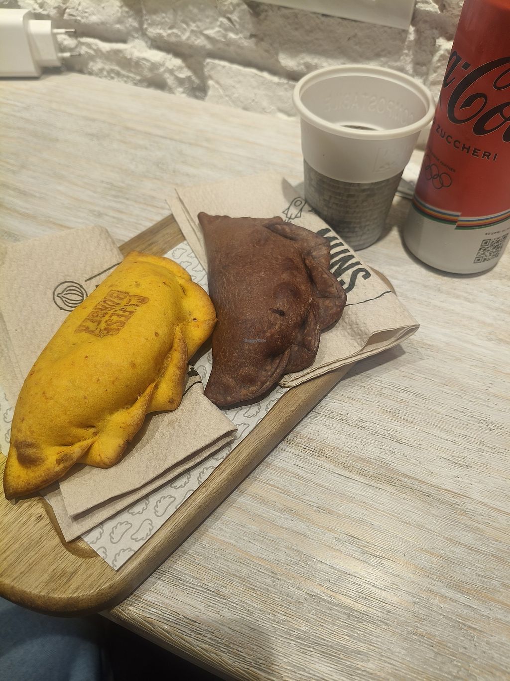 Only empanadas, to eat on-site on a few stools or for takeaway. Two savory vegan options and one sweet