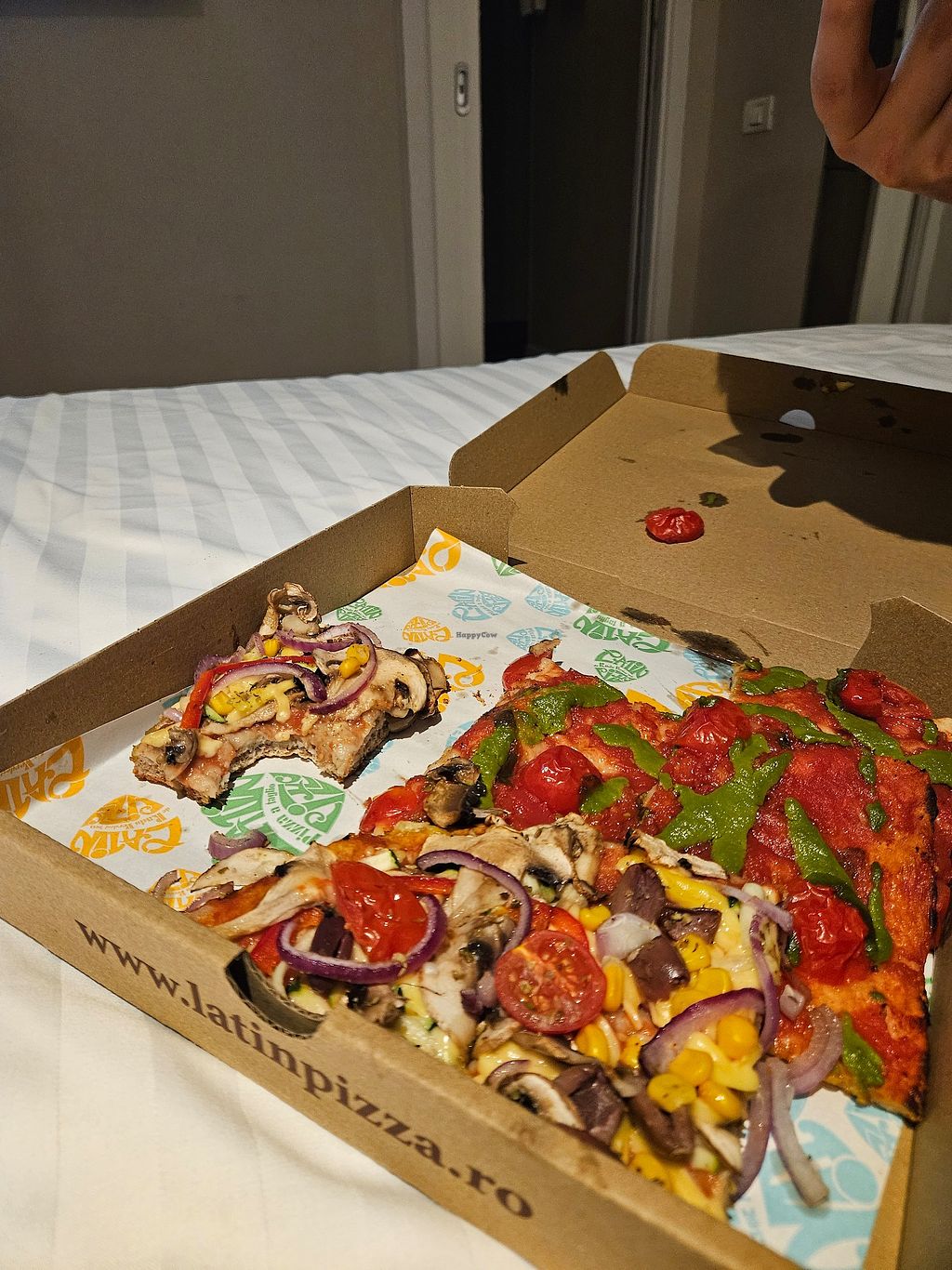 Latin Pizza have several vegan options, but I think that the most popular one is Truffle Potato Pizza. I think a vegan cheese is a little bit gummy, and also they use one cutter for all pizzas. They cut pizza also with pizza scissors and I am grateful that they took clean ones for my pizza