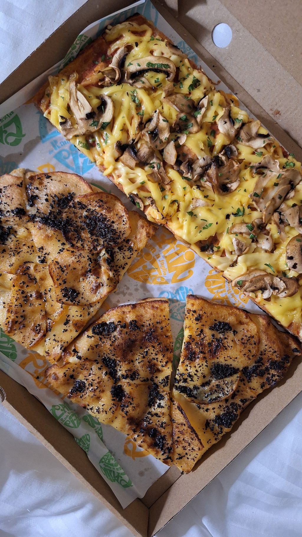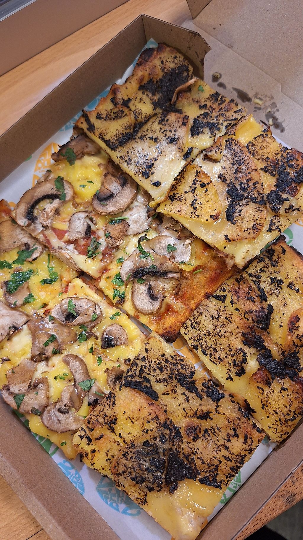 Ordered the vegan cheese & mushroom & the spicy tomato bread.