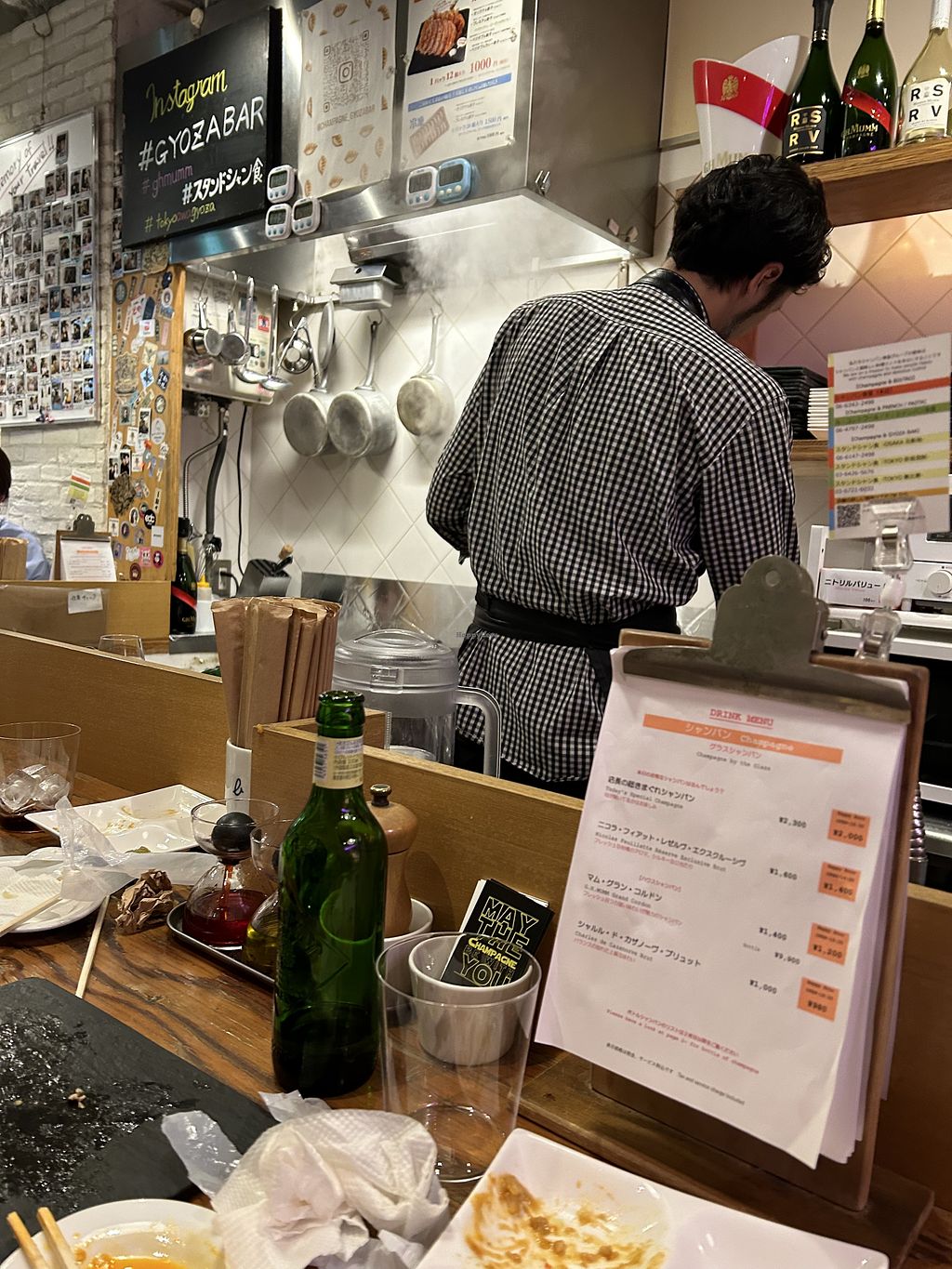 Lacto Japanese Beer/Wine French Fusion Non-veg Serves meat, vegan options available. French champagne izakaya and gyoza place offering two vegan gyoza options: garlic and vegan curry. Open Mon-Sat 11:30am-2:00pm, 5:30pm-9:00pm. More