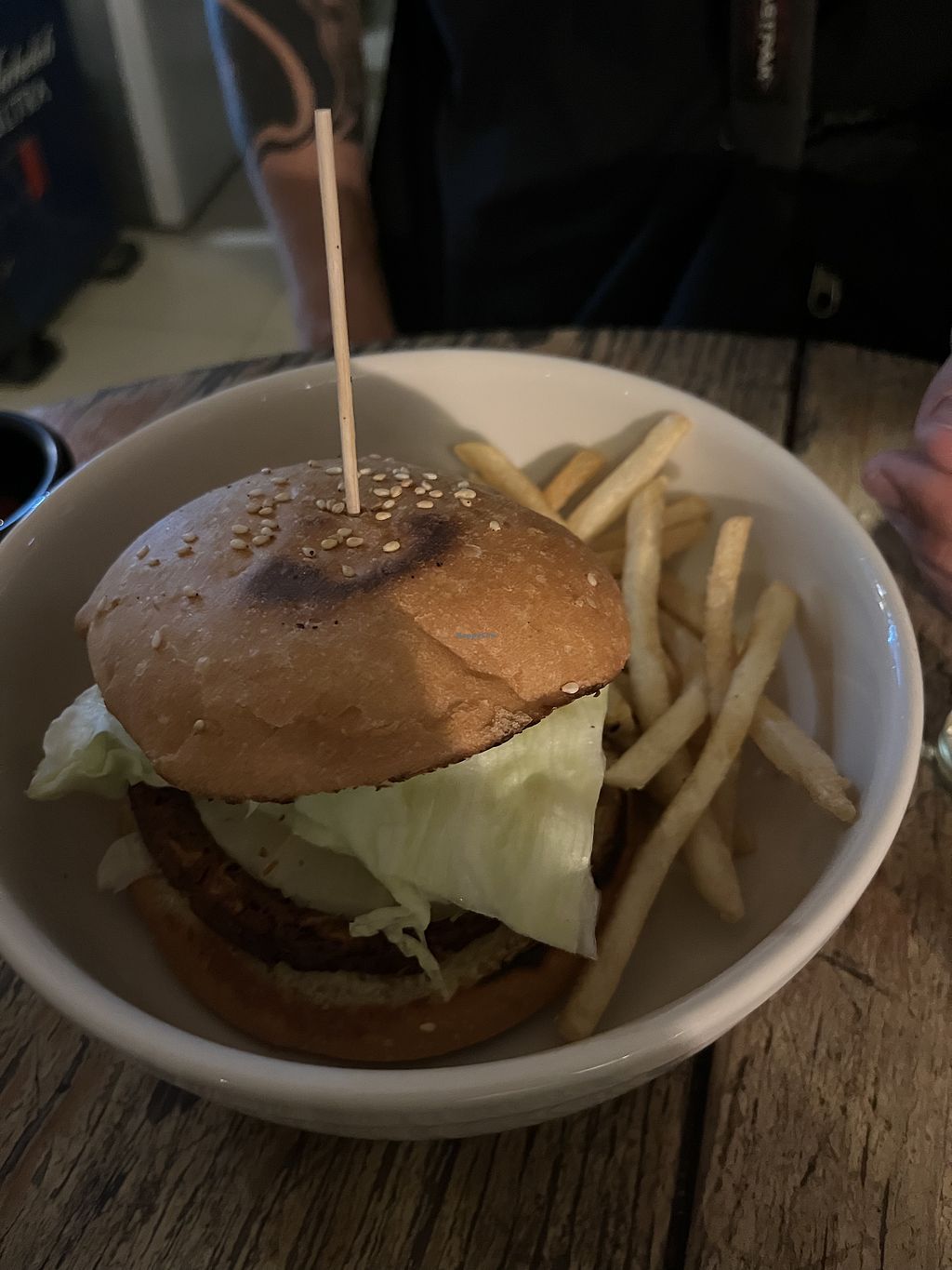 I got the beyond meat burger with the gf spring roll and they were both super tasty. The beyond meat burger felt like I home cooked burger, super juicy and tasty with lots of chips. The spring roll with the satay sauce was the perfect starter before devouring the burger. Food didn’t take long to cook. Would highly recommend.