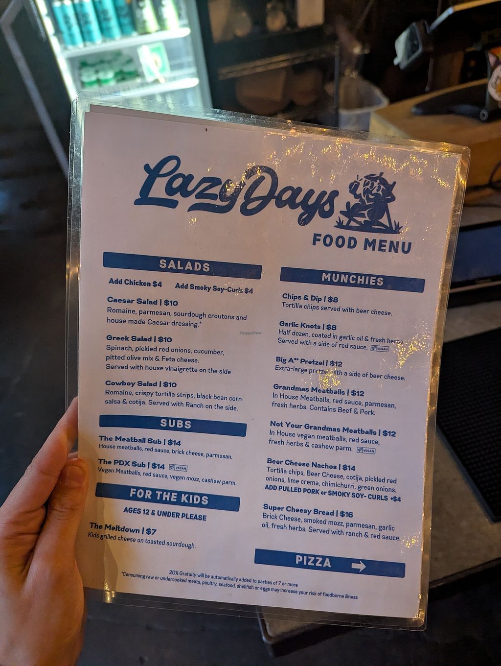 We stopped in from out of town on a Thursday night before football and caught Happy Hour 🍻 there's an upstairs, pinball and rack of games downstairs, and I appreciate the baby change station in the restroom. For food I tried the vegan pizza "Meatball Dreams" with spinach and roasted garlic, the flavor was great and I finished the whole portion of the smaller size. My two negatives are that my pizza did tear up the roof of my mouth 😵💫 and it's counter service bus yourself. I didn't try, but appreciated on the cocktail menu there's someone thinking plant-based as well as non-alcoholic