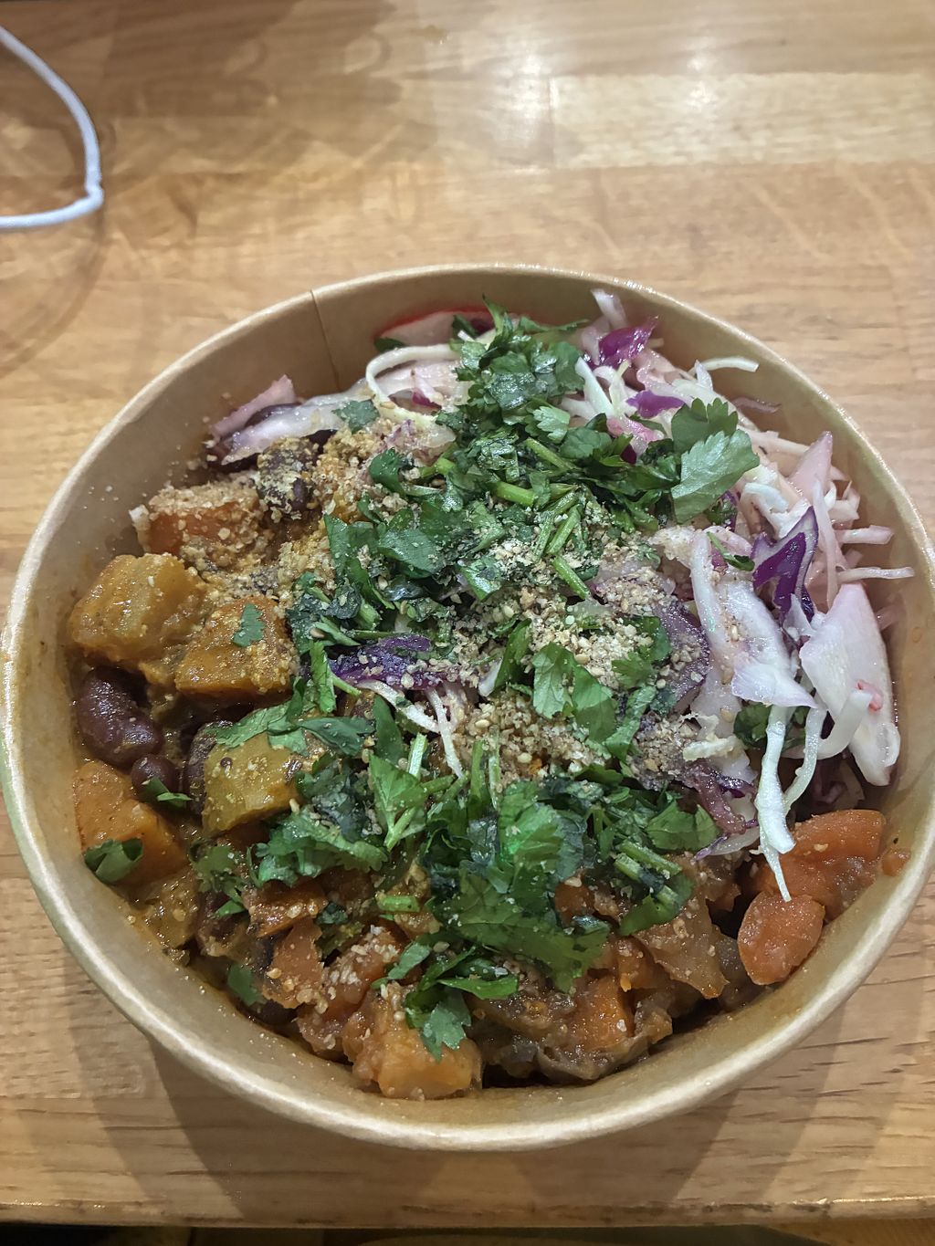 Nice vegan dish with bao, potato's and a lot of vegetables