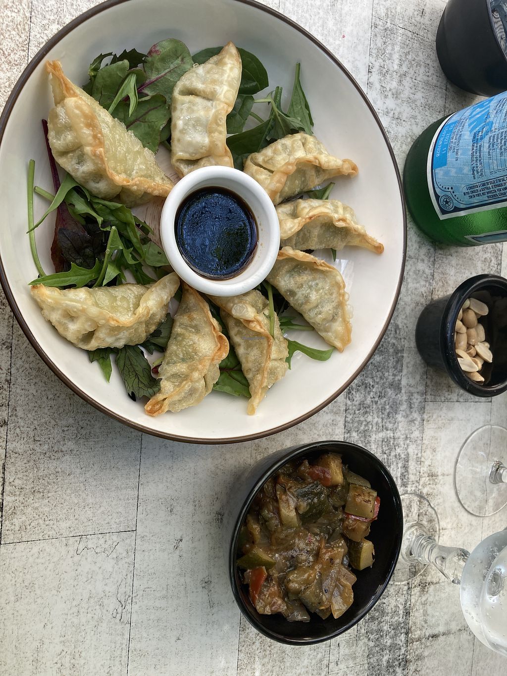 Serves meat, vegan options available. Small restaurant serving tapas and pasta. Offers vegan choices such as ratatouille, zucchini flowers, vegetable gyoza and salad. Open Mon-Wed 18:00-23:00, Tue 10:00-14:00, Thu 10:00-14:30, Thu-Fri 18:00-23:30, Sat 10:00-14:30, Sat-Sun 18:00-23:00.