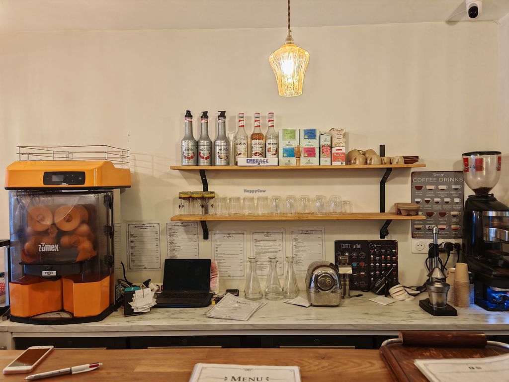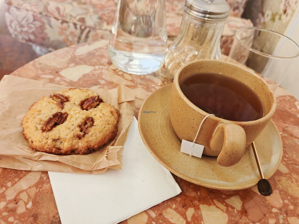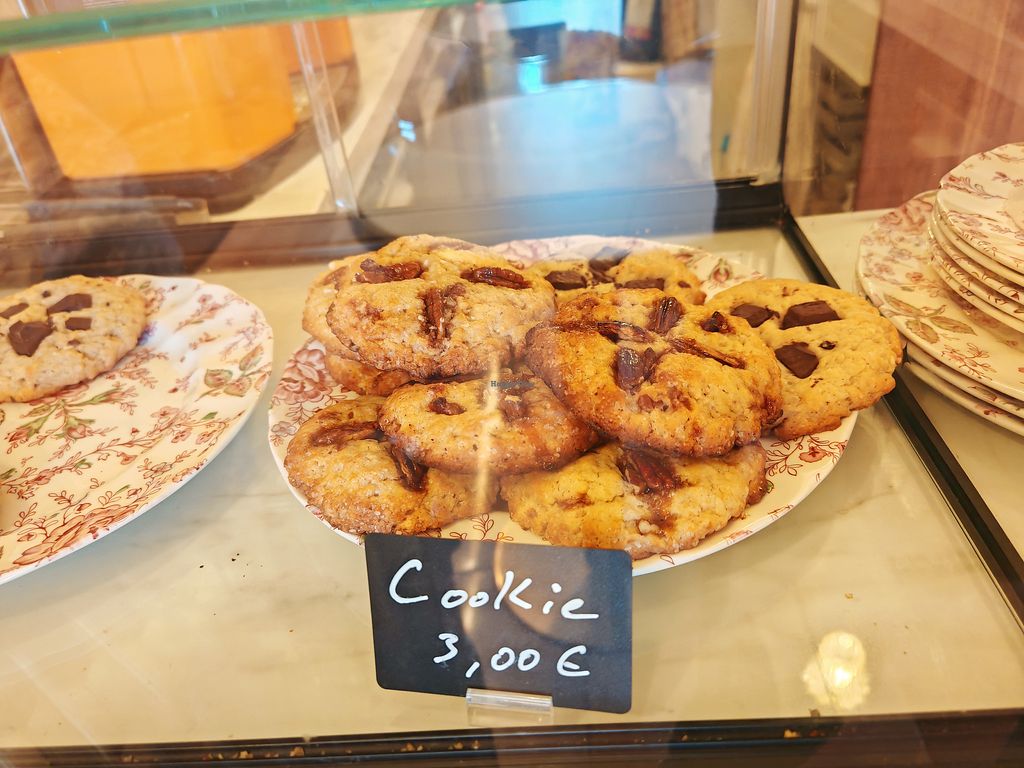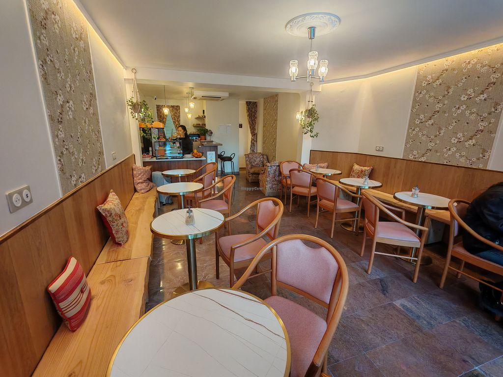 A cozy house and 100% plant-based coffee shop located in the heart of Paris on Rue du Caire. The establishment offers a delightful selection of treats made entirely from plant-based ingredients, strictly excluding milk, eggs, and honey. Guests can enjoy classic French viennoiseries such as croissants and pain au chocolat, alongside a variety of homemade pastries like apple and pear tarte tatin. For lunch or a snack, the kitchen provides savory options including sandwiches, salty snacks, and healthy granola bowls topped with nuts and seasonal fruits. The beverage menu features specialty coffees, iced matcha lattes, and fresh extractor juices. Open Tue-Sun 09:00-19:00. Closed Mon.