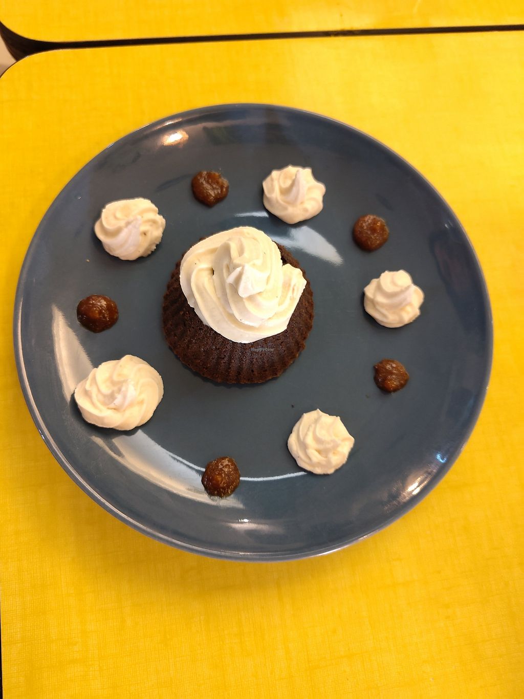 Pour dessert nous avons choisi le Gâteau Basque vegan : un MUST ! !! Nous avons également pris la crème au chocolat avec des gâteaux sablés à la fleur d'oranger. Excellent bien que la noix de coco soit un peu trop dominante à notre goût.
