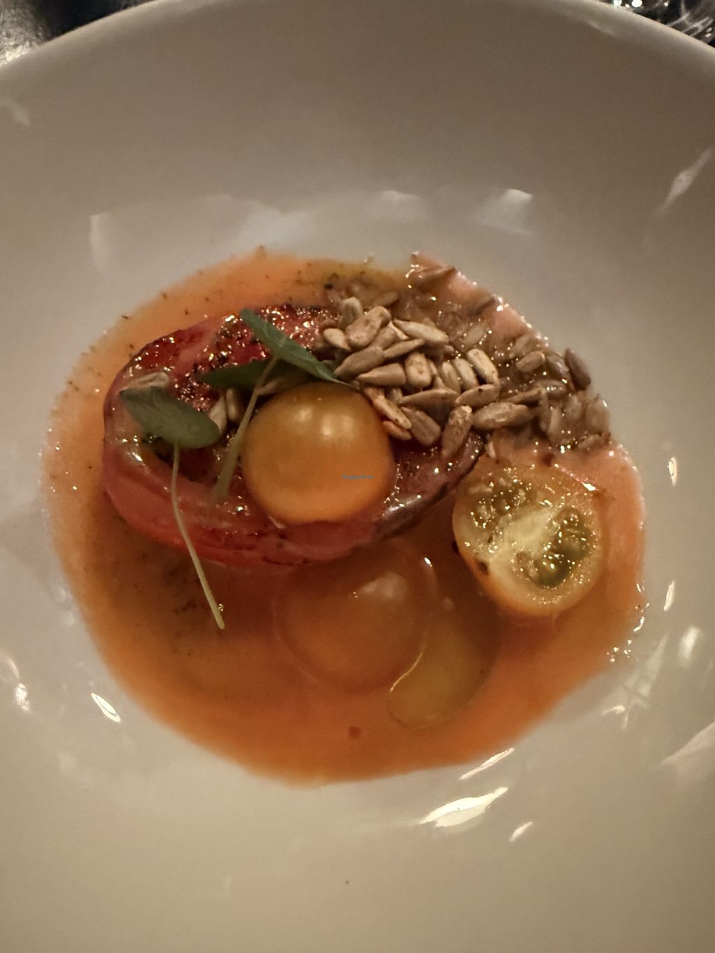 The menu is vegetable based. You can choose between 5-9 courses. Standard its vegetarian but you can choose to make the courses vegan. (Or add meat or fish💀) the staff is very friendly and knowledgable, the bill is less friendly but hey, it was a very nice evening with lots of good wines (vegan as well!)