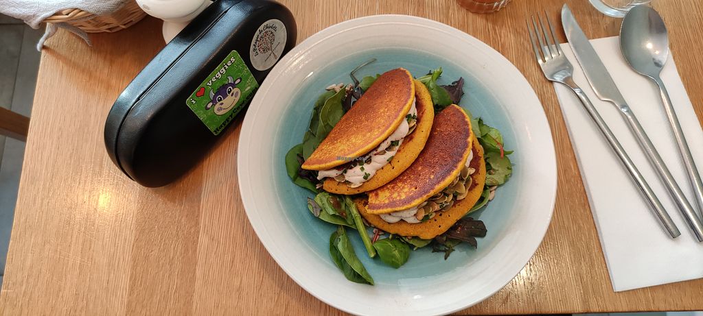Food was okay but could of been more intense. They have good products but everything in the plate is not so tasty and really original for the price. I had starter pancake (was good), eggplant (lack of taste and the tahini was just on the side of the plate), desert chocolate pancake (it was okay but 12€ 🤔). So disappointed :(