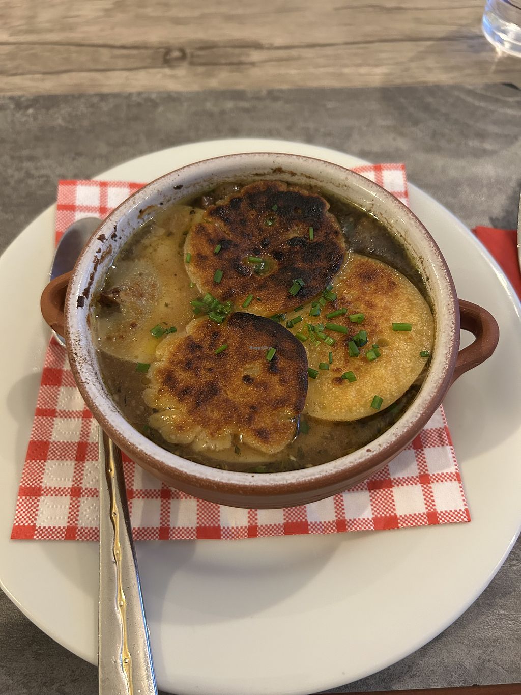 Read moreNot because the service was super bad or the atmosphere not that pretty, but because the food honestly tastes really bad, and while eating, you think - I could do this better. The cheese on the onion soup wasn’t bad, but the soup base itself tasted so gross that I couldn’t finish it. Lacked flavor, no depth, watery, and had a strong herbal taste that reminded me of store-bought bouillon and a random herb mix.